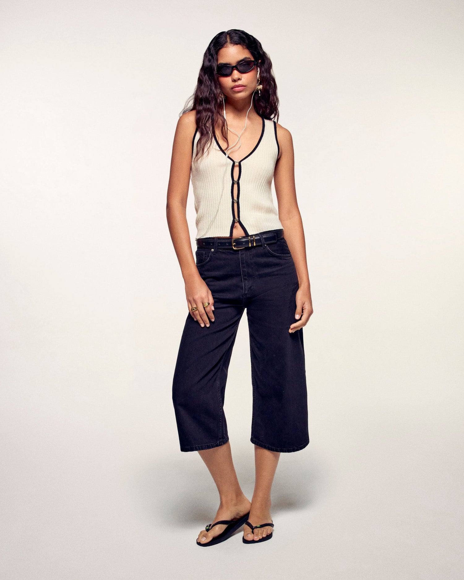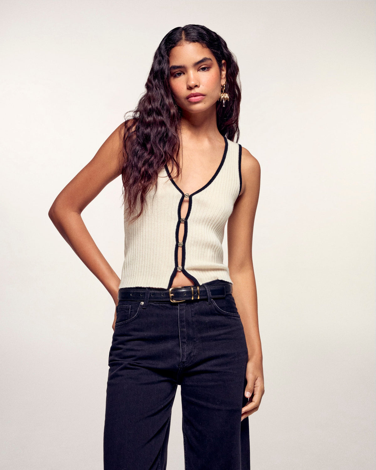 Ein schickes und grafisches Spiel der Kontraste für dieses Rippstrick-Top. Es besticht durch seine kontrastierenden Abschlüsse und die dezent platzierten goldenen „FF“-Schmuckelemente in der Mitte. Gefertigt aus 2-fäden Kaschmir, bietet es eine körpernahe Passform und außergewöhnliche Weichheit für eine moderne und raffinierte Silhouette.