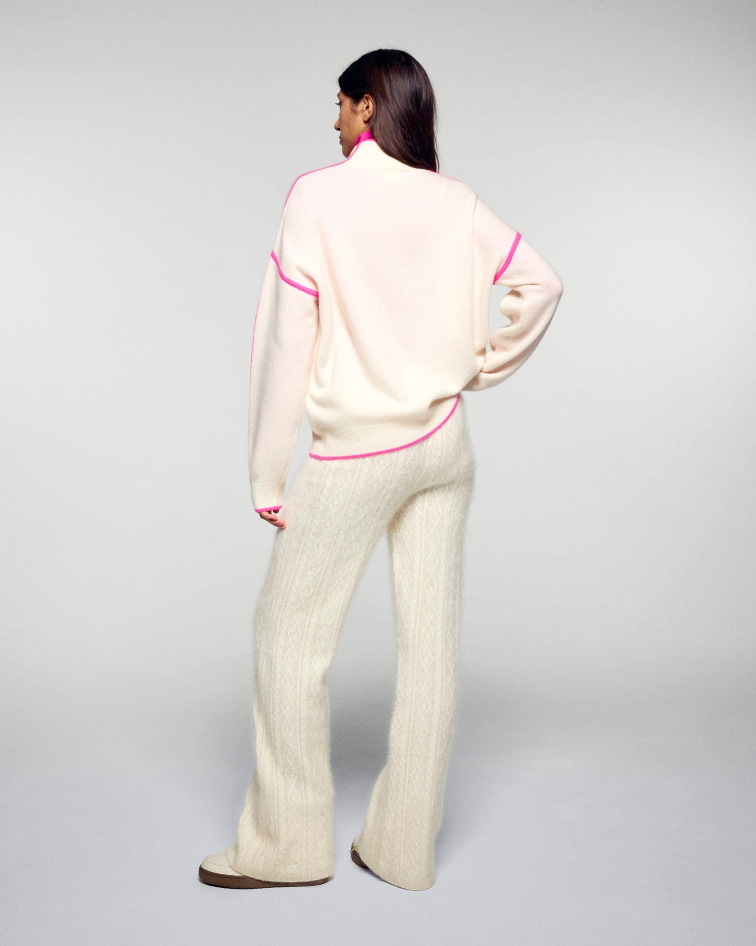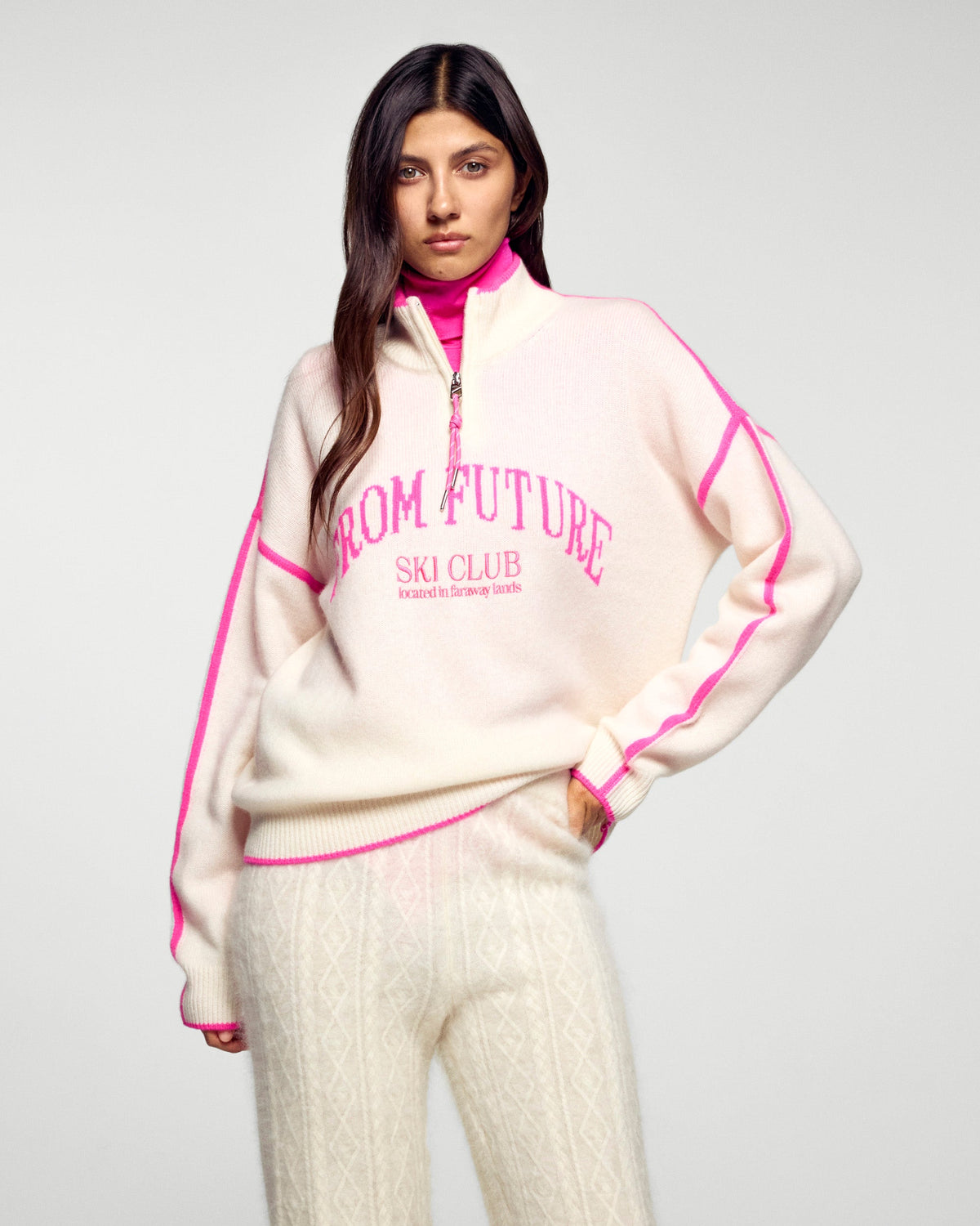 Pullover Troyer-Kragen From Future Ski - 100% Kaschmir - GCS-verifiziert - Ecru