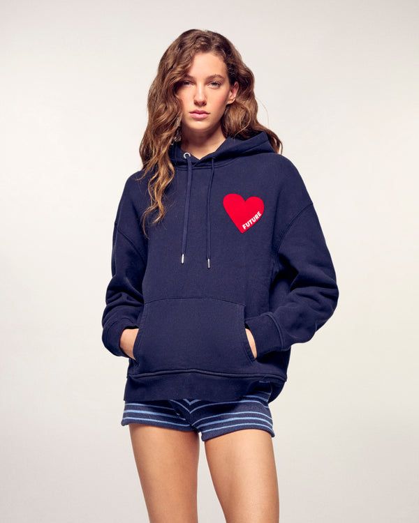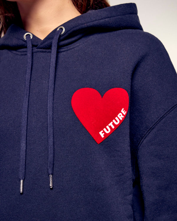 Sweatshirt Kapuzenpullover Herz - Baumwolle - Marineblau