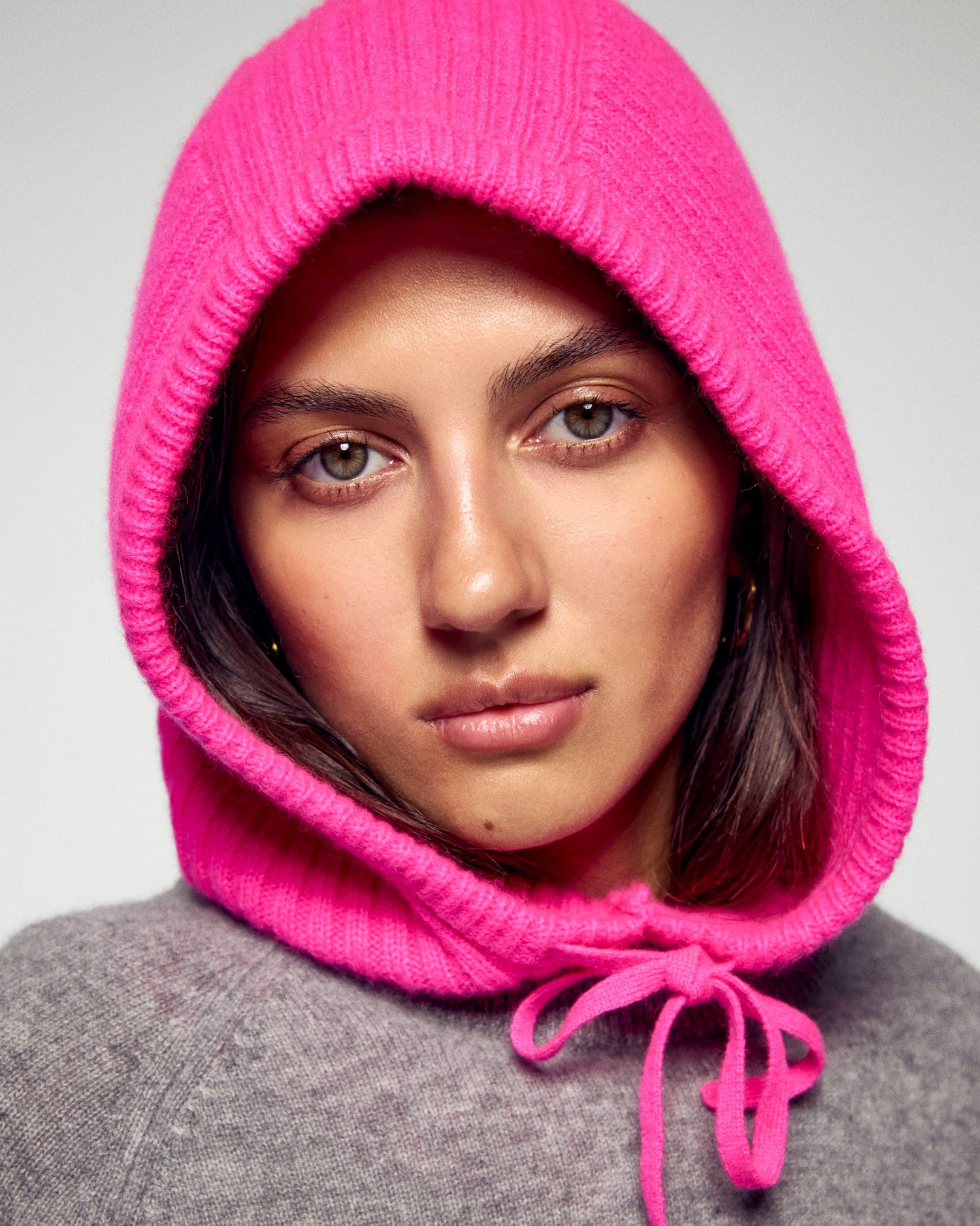 Umgib dich mit Sanftheit dank dieser gerippten Sturmhaube aus Kaschmir. Mit Kordelzug für eine perfekte Passform wärmt sie deine Silhouette und verleiht deinen Saison-Looks einen Hauch von Eleganz.