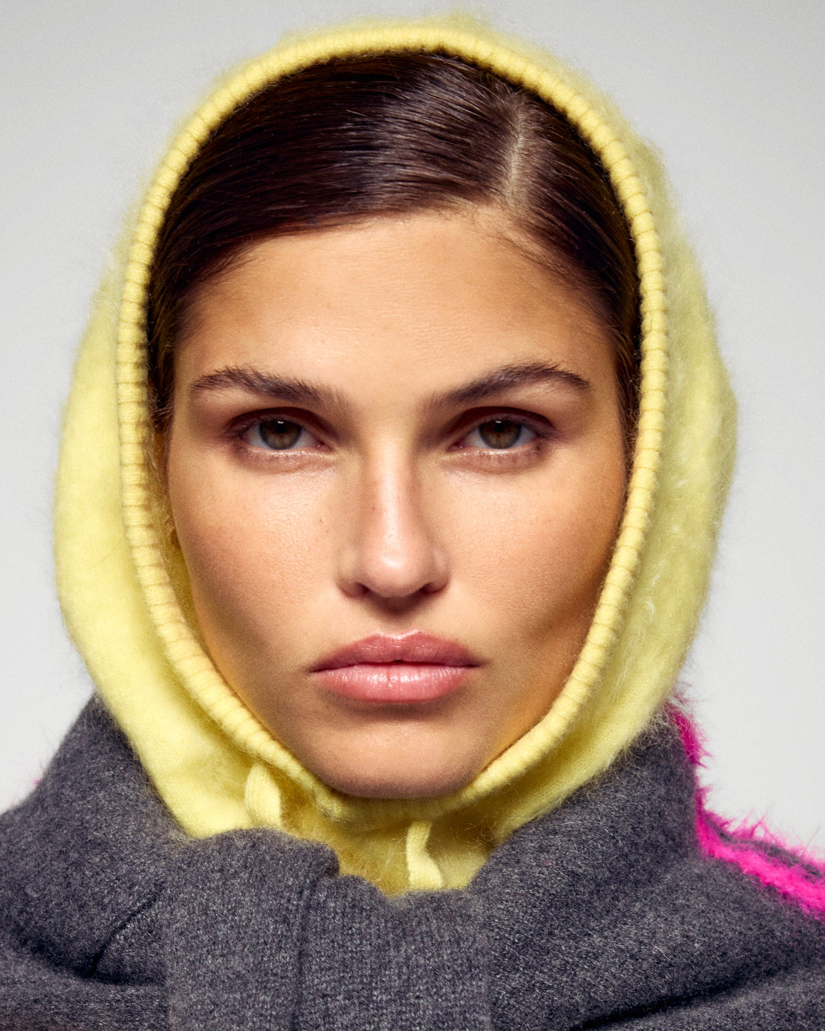 Diese Sturmhaube aus gebürstetem Kaschmir verfügt über gerippte Kanten für eine perfekte Passform. Erhältlich in einem leuchtenden Rosa, wärmt es Ihre Silhouette mit einem Hauch von Eleganz.