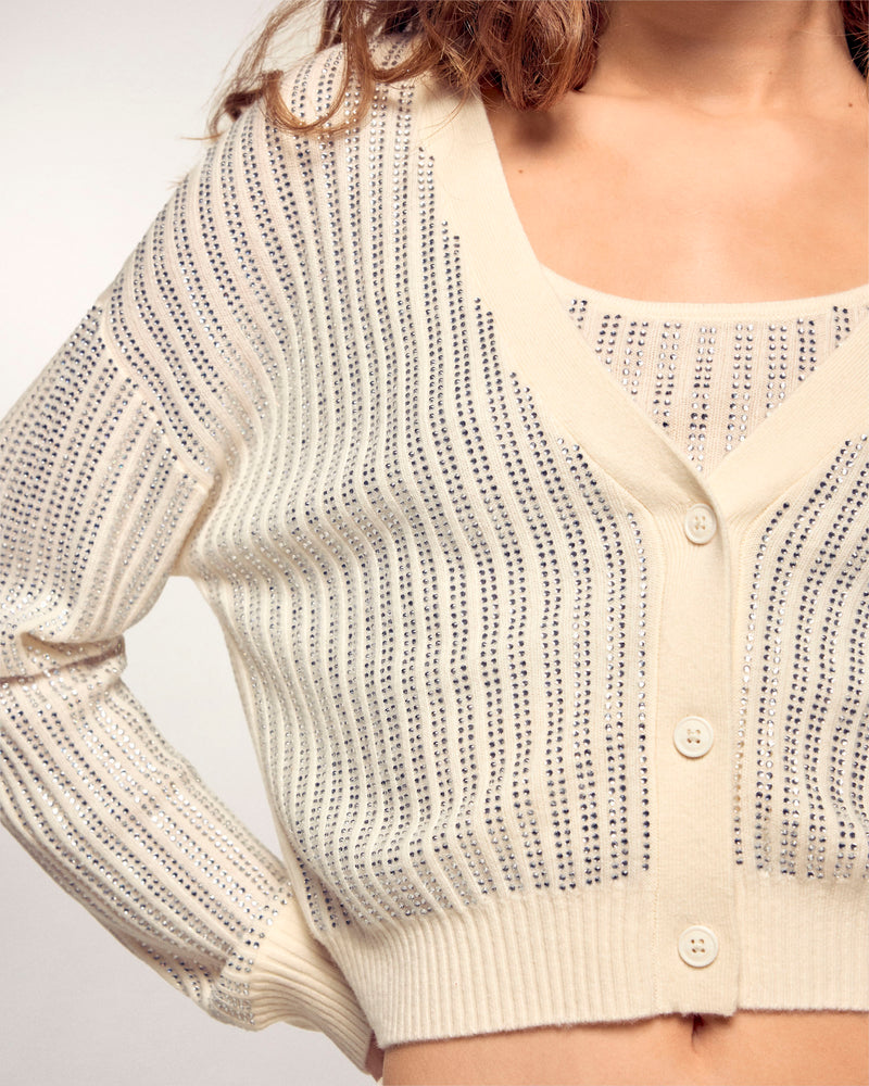- Cardigan-Pullover mit Strasssteinen