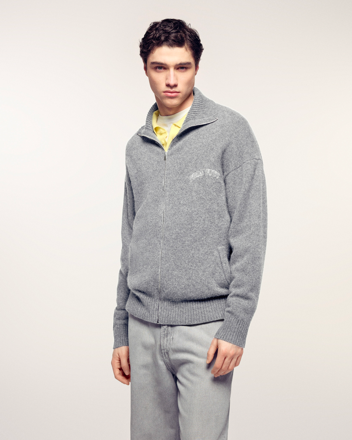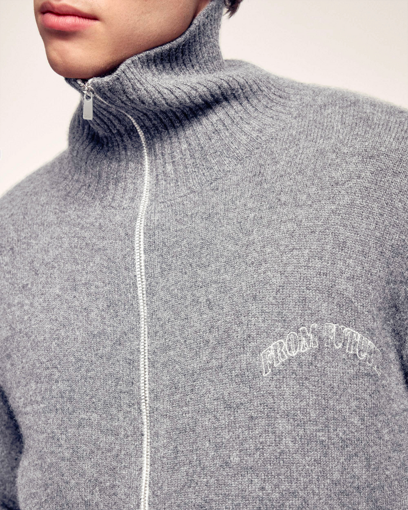 Diese Strickjacke mit Reißverschluss ist aus reinem Kaschmir gefertigt und sorgt für außergewöhnliche Wärme und Weichheit. Ihr klassischer Schnitt und der Stehkragen machen sie zu einem zeitlosen Kleidungsstück, das durch die charakteristische „FROM FUTURE“-Stickerei aufgewertet wird.