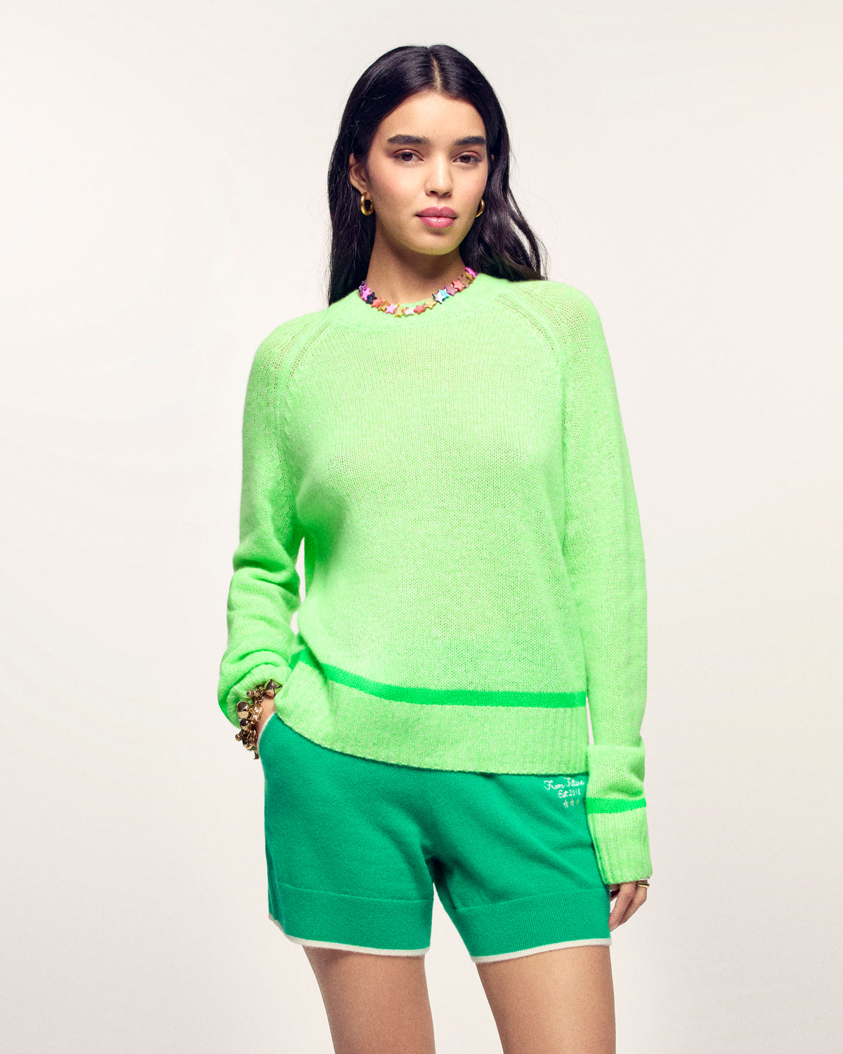 Der Pullover mit einer reichen und weichen Textur. Dieser aus Kaschmir 4 Fäden gefertigte Pullover ist aus Mouliné-Garn gestrickt, was für einen schönen melierten und texturierten Effekt sorgt. Seine Oversize-Passform wird durch kontrastierende Strickbündchen am Saum und an den Ärmeln modernisiert, was für einen grafischen und trendigen Look sorgt.