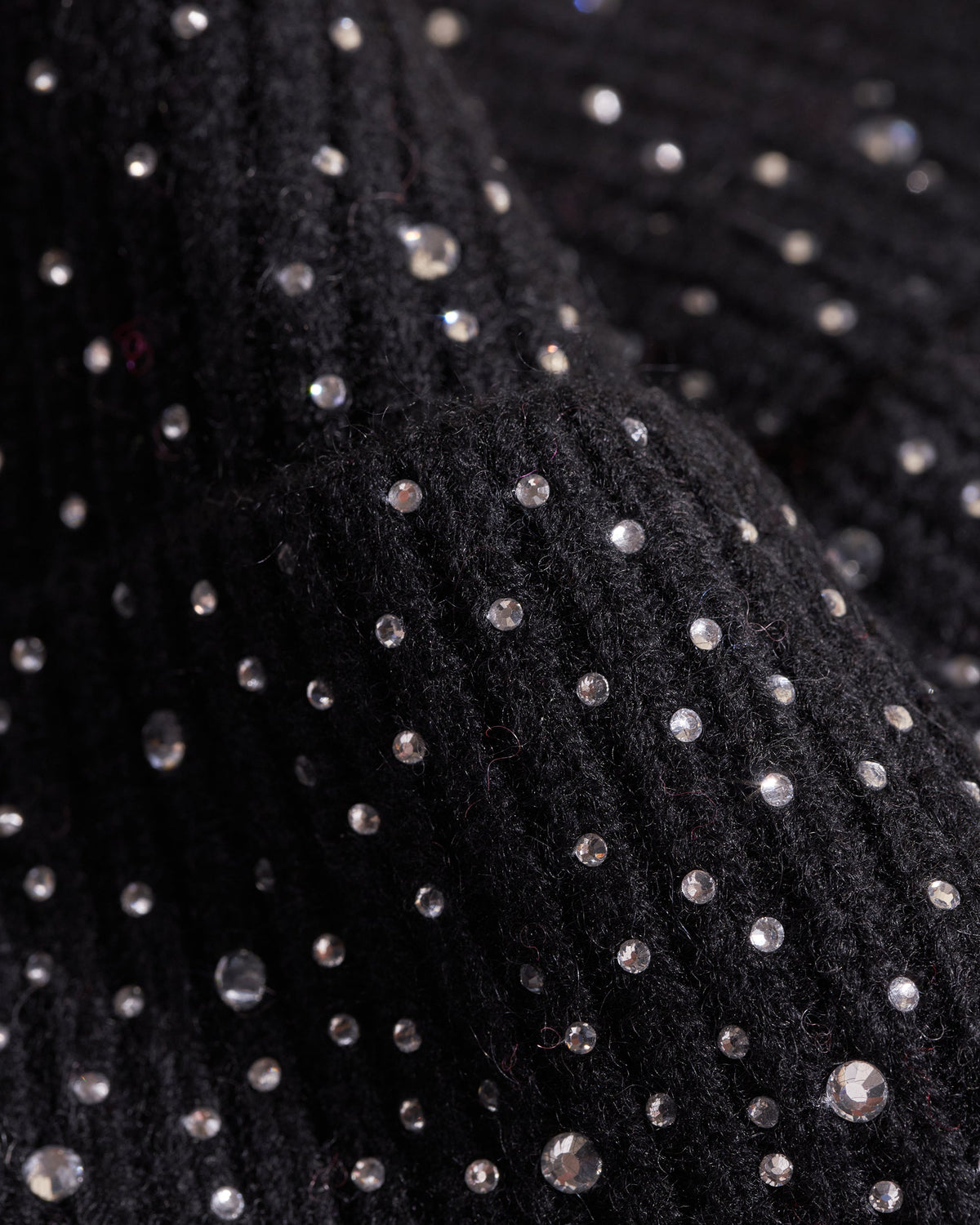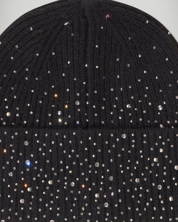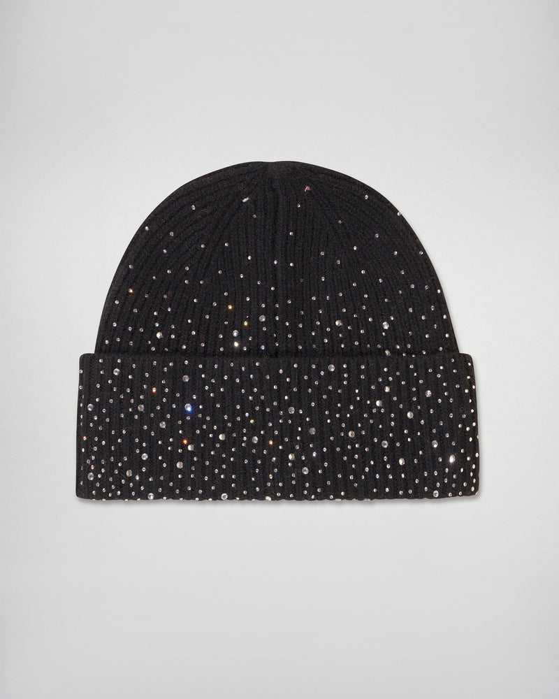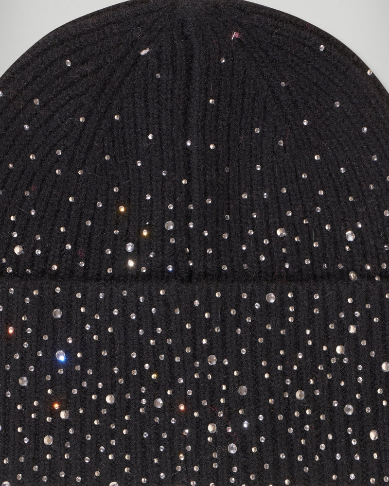 - Strassbesetzte Mütze aus GCS®-zertifiziertem, geripptem 6-fädigem Kaschmir, Damen