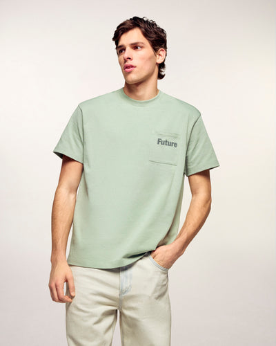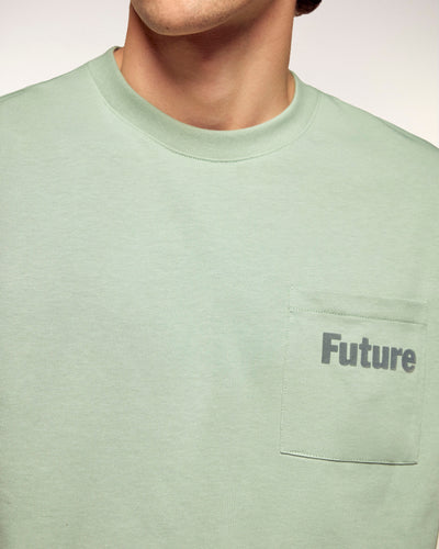 Dieses kurzärmelige T-Shirt ist ein unverzichtbares Basic unserer Garderobe, das auf Schlichtheit und Komfort setzt. Es wurde in Portugal aus hochwertiger Baumwolle gefertigt und weist eine klassische Regular-Fit-Passform auf, die durch eine aufgesetzte Brusttasche mit dezentem geflocktem „FUTURE“-Schriftzug ergänzt wird.