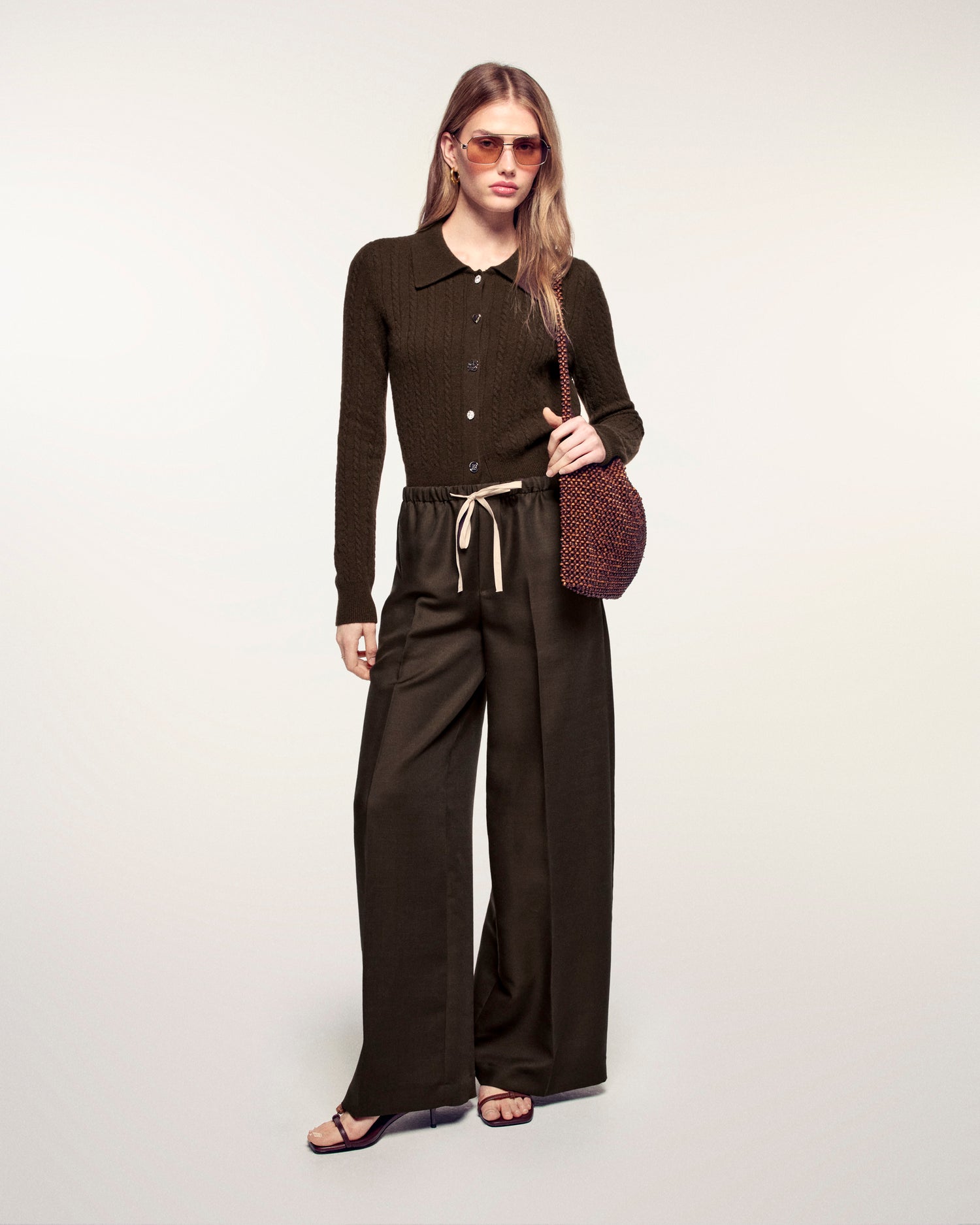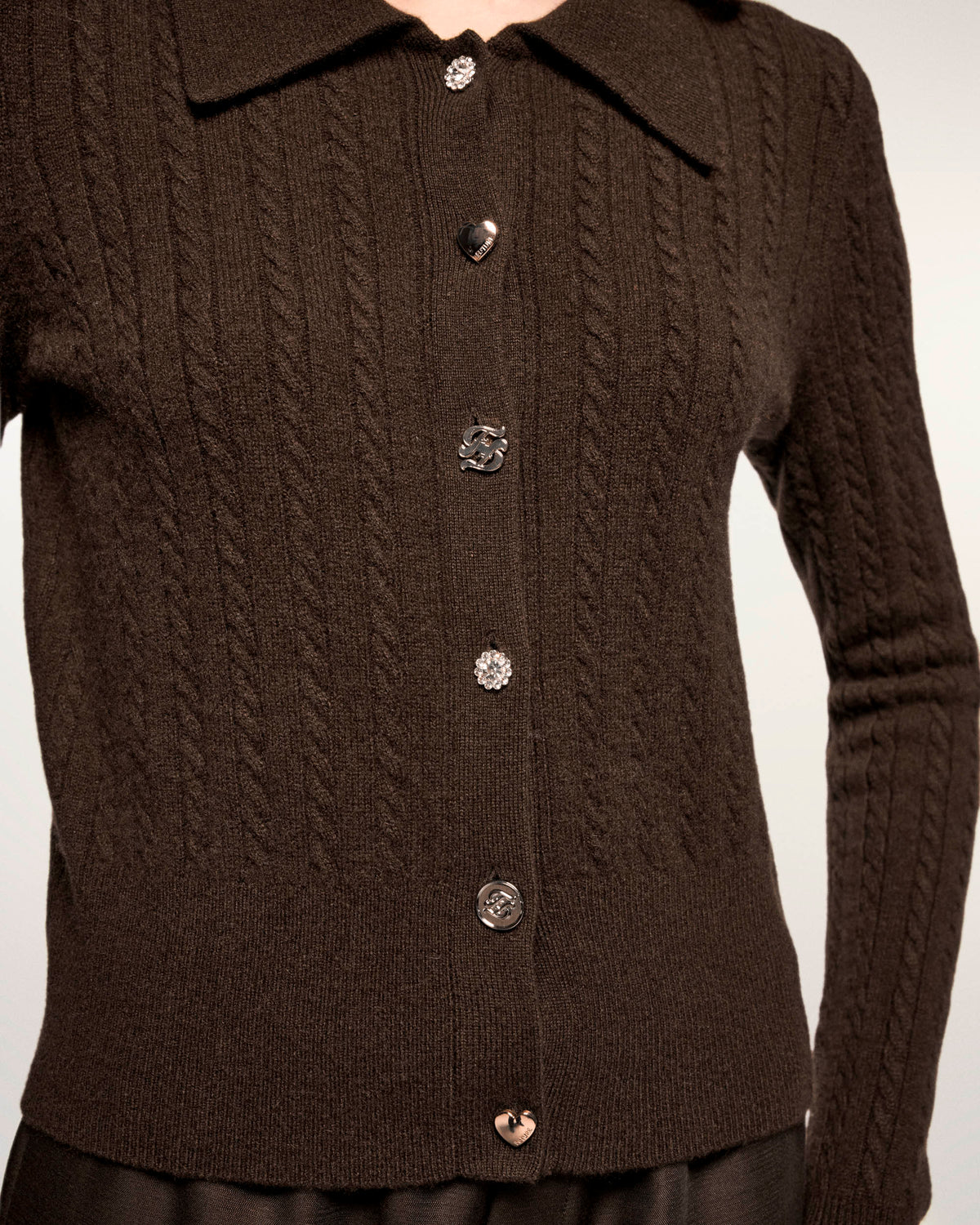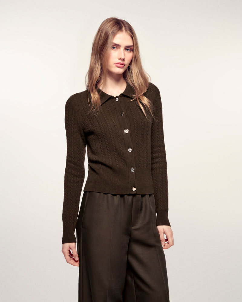 Der Cardigan, der für einen schicken Vintage-Touch sorgt. Dieser aus Kaschmir 2 Fäden gefertigte Cardigan bietet einen weichen und leichten Strick. Sein kurzer Slim-Schnitt wird durch feine Zopfmuster strukturiert und durch originelle Zierknöpfe aufgewertet.