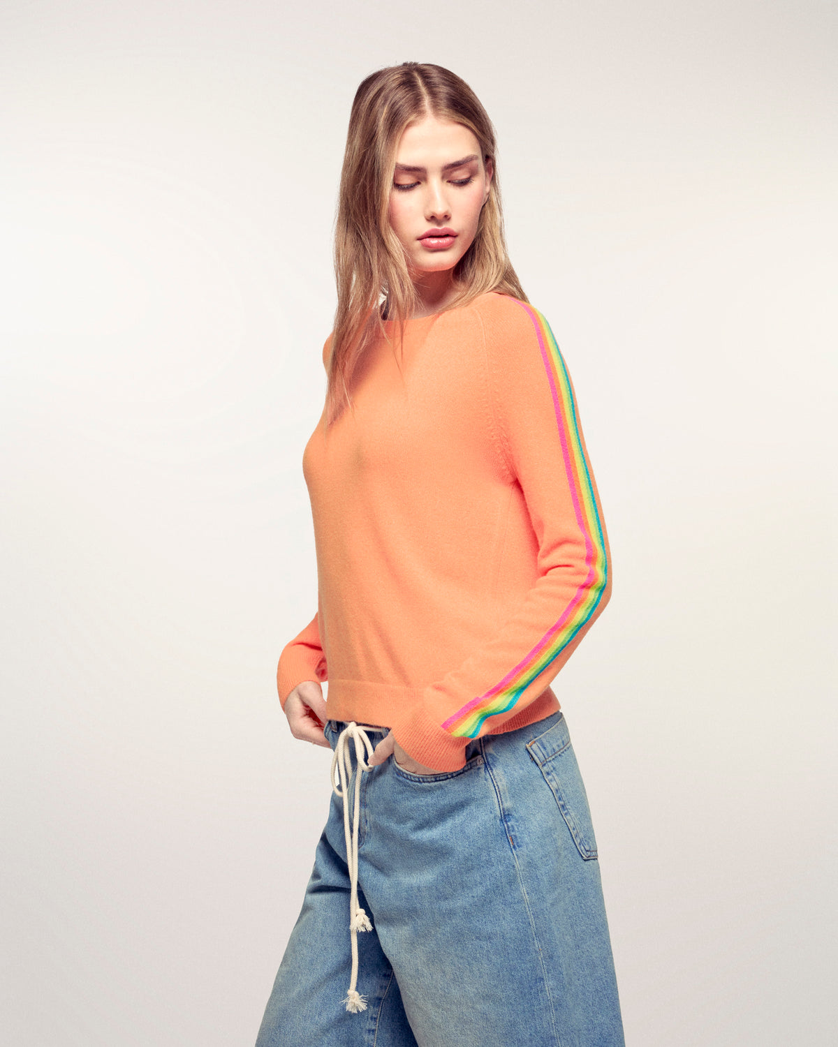 Die Eleganz von Kaschmir trifft bei diesem Rundhalspullover auf kräftige Farben. Gefertigt aus Kaschmir 2 Fäden, bietet er unvergleichliche Weichheit und ideale Leichtigkeit. Die bunten Streifen an den Ärmeln verleihen dem Regular-Schnitt eine dynamische Note für einen modernen und zeitlosen Look.