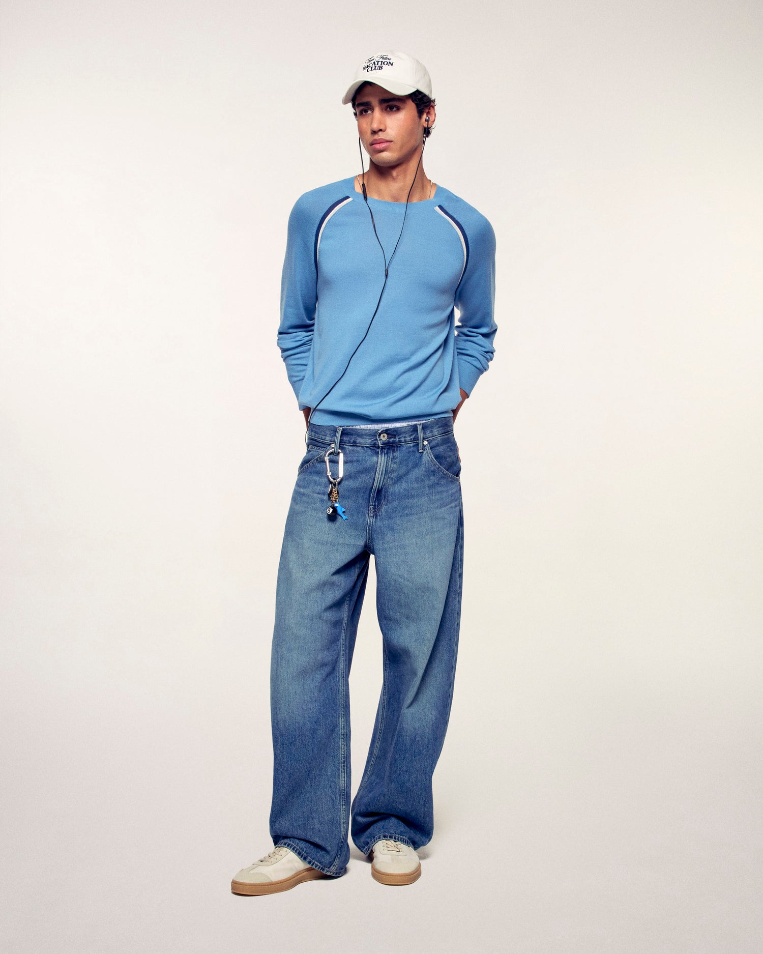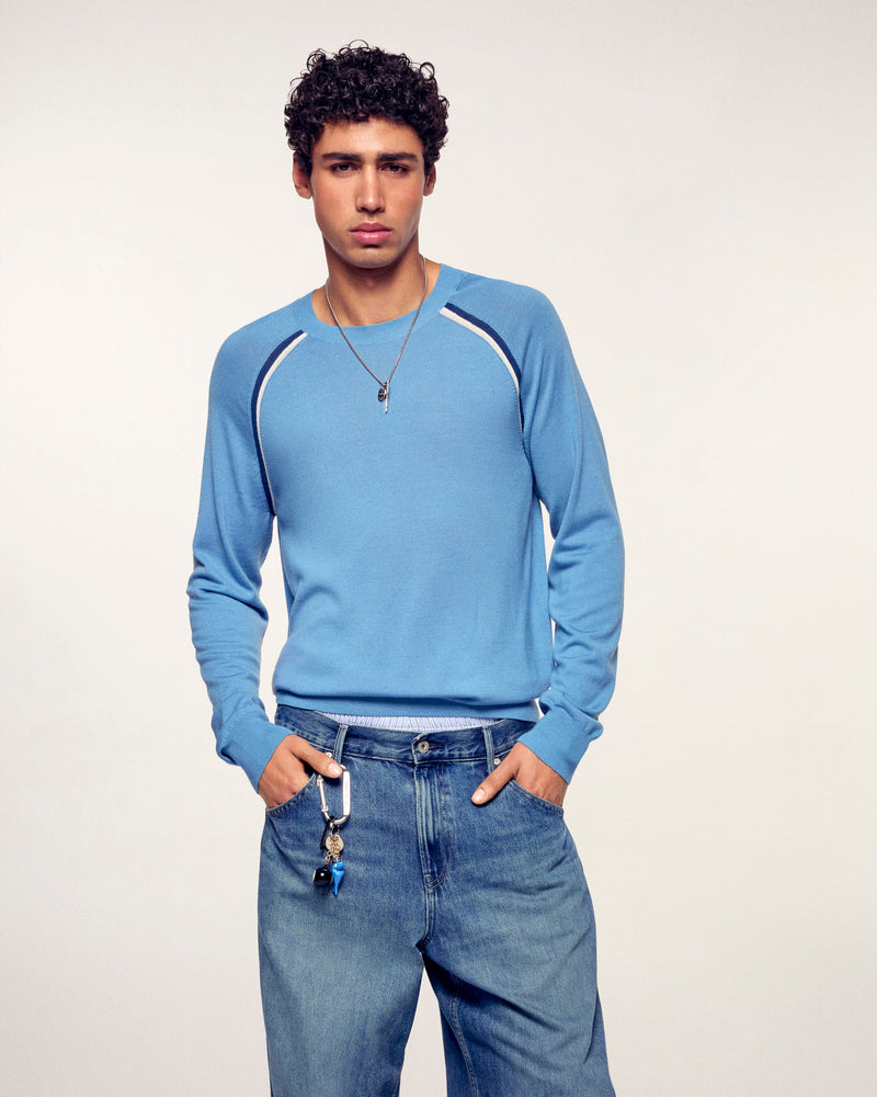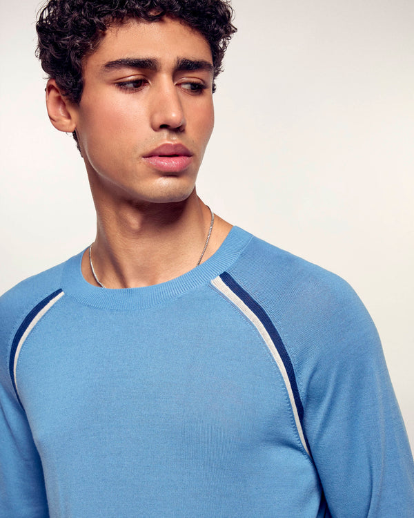 Ein Pullover aus extrafeiner Merinowolle. Sein Design wird durch kontrastierende Ringel an den Ärmeln und am Körper aufgewertet, was für einen modernen und sportlichen Look sorgt.
