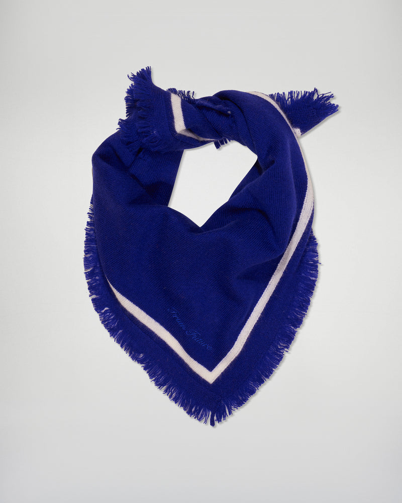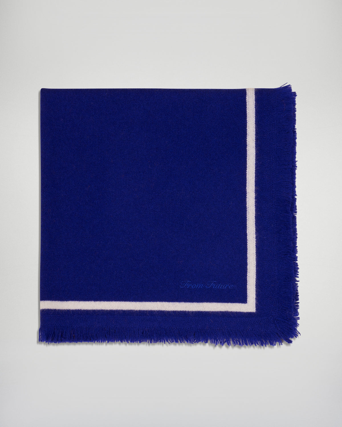 Das unverzichtbare Accessoire für den Winter ist da. Perfekt, um Ihren Look zu veredeln, vereint unser Schal aus 100 % Kaschmir Eleganz und Komfort. Aus einer 2-fädigen Masche gefertigt, bietet er eine unvergleichliche Weichheit. Die FROM FUTURE Stickerei und das einzigartige Strickmuster schaffen subtile Farbvariationen in Navy und Ecru und verleihen Ihrem Stil eine zeitlose Note von Kühnheit.