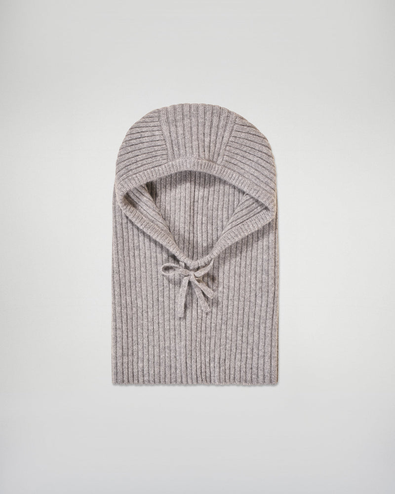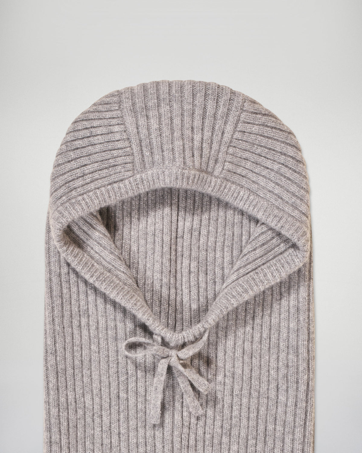 Umgib dich mit Sanftheit dank dieser gerippten Sturmhaube aus Kaschmir. Mit Kordelzug für eine perfekte Passform wärmt sie deine Silhouette und verleiht deinen Saison-Looks einen Hauch von Eleganz.