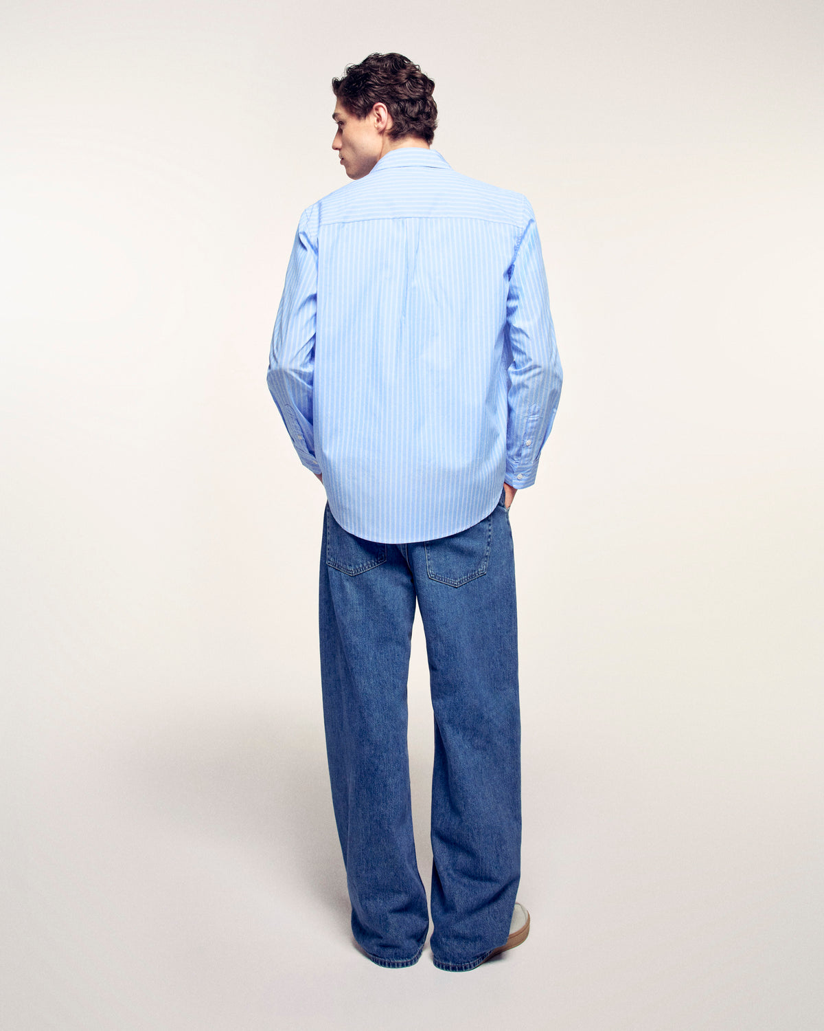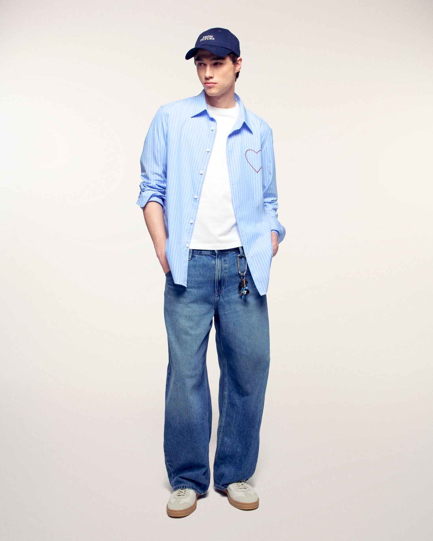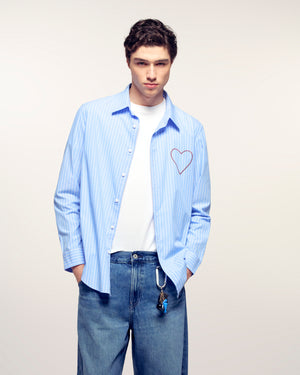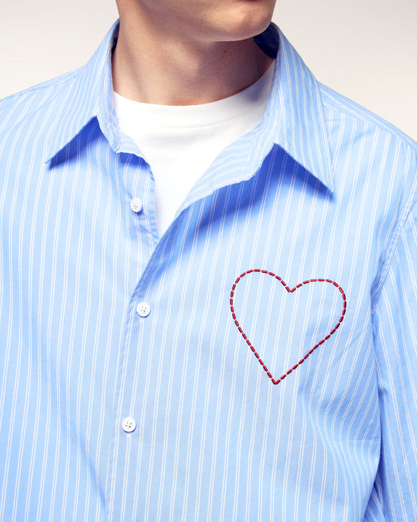 Dieses gestreifte Hemd besticht durch ein zart gesticktes und abgestepptes Herz auf der Brust. Mit Hemdkragen und langen Ärmeln ausgestattet, verfügt es über einen Knopfverschluss und geknöpfte Manschetten für eine anspruchsvolle Silhouette.
