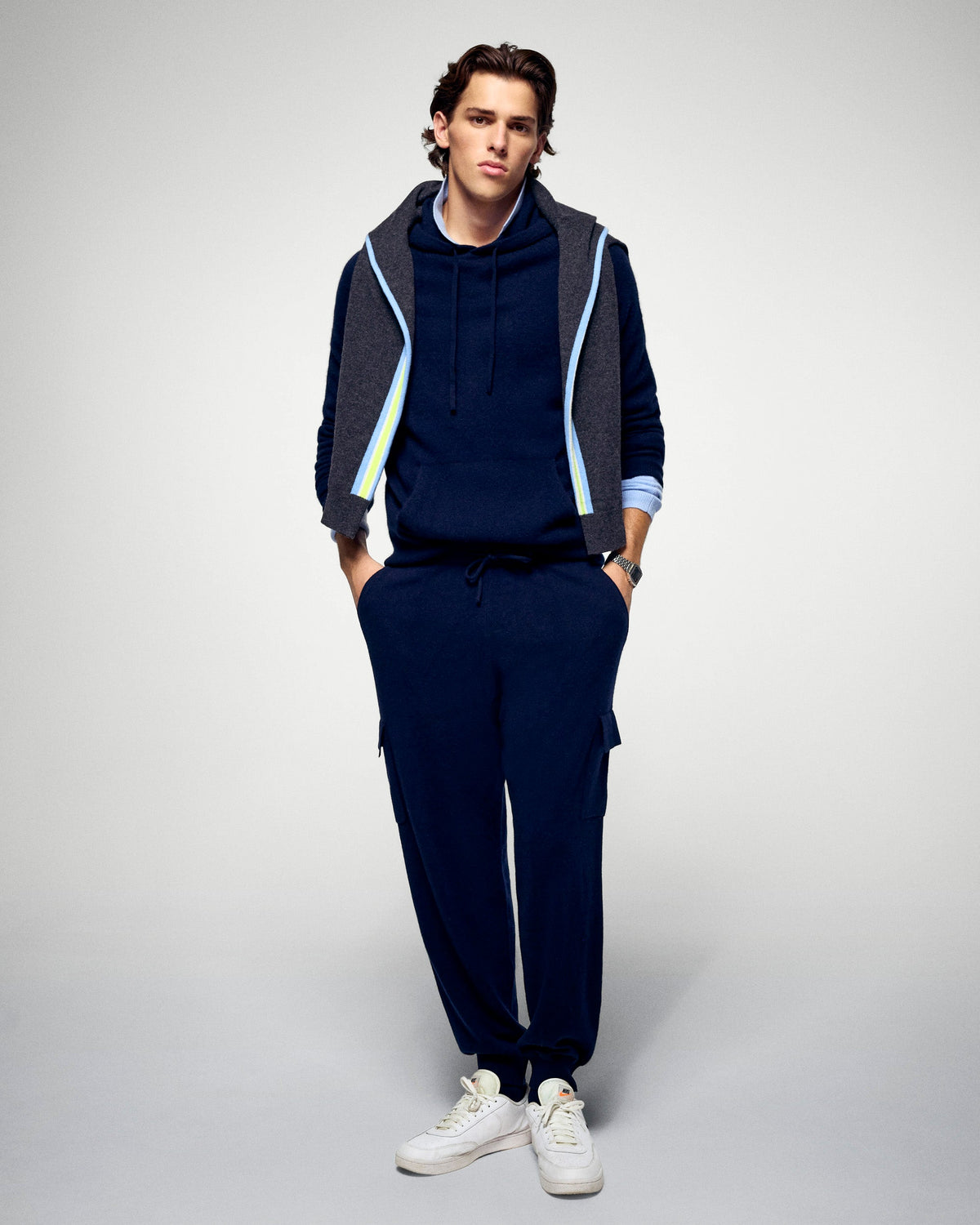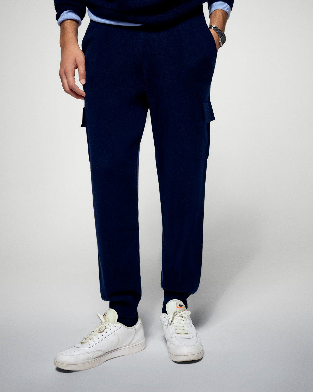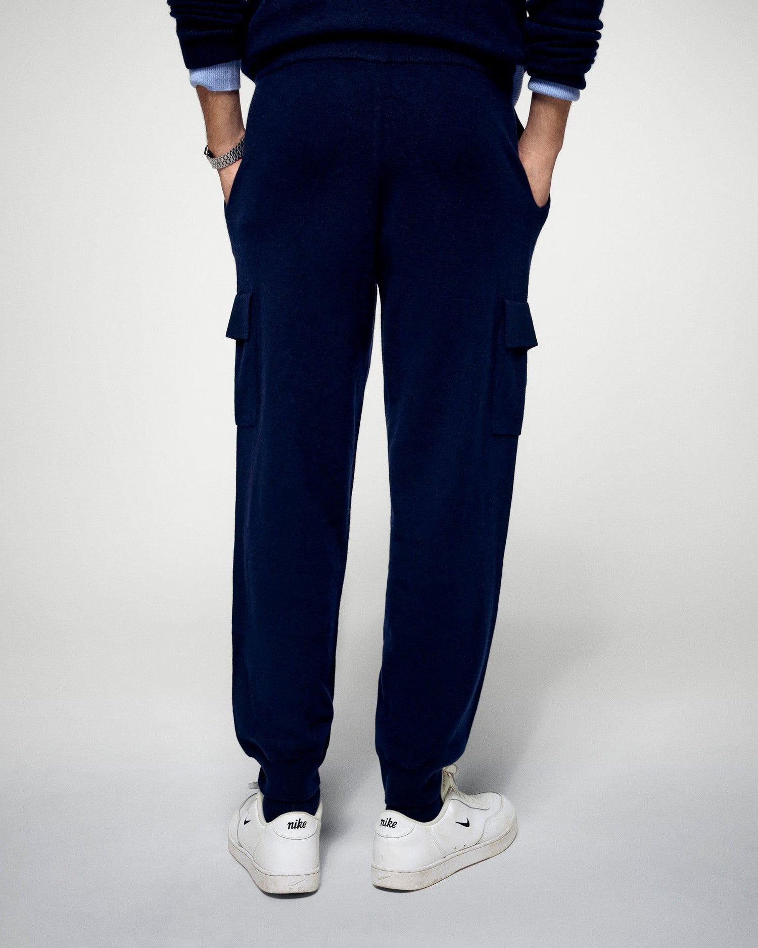 Diese weite Oversized-Jogginghose sorgt für eine lässige Silhouette und ist aus Kaschmir gefertigt. Sie hat einen elastischen Bund und die Taschen im Cargo-Stil verleihen ihr einen eleganten, lässigen Look. Einfach zu kombinieren, vervollständigen Sie den Look mit einem weiten T-Shirt oder einem weichen Pullover.