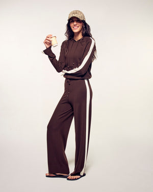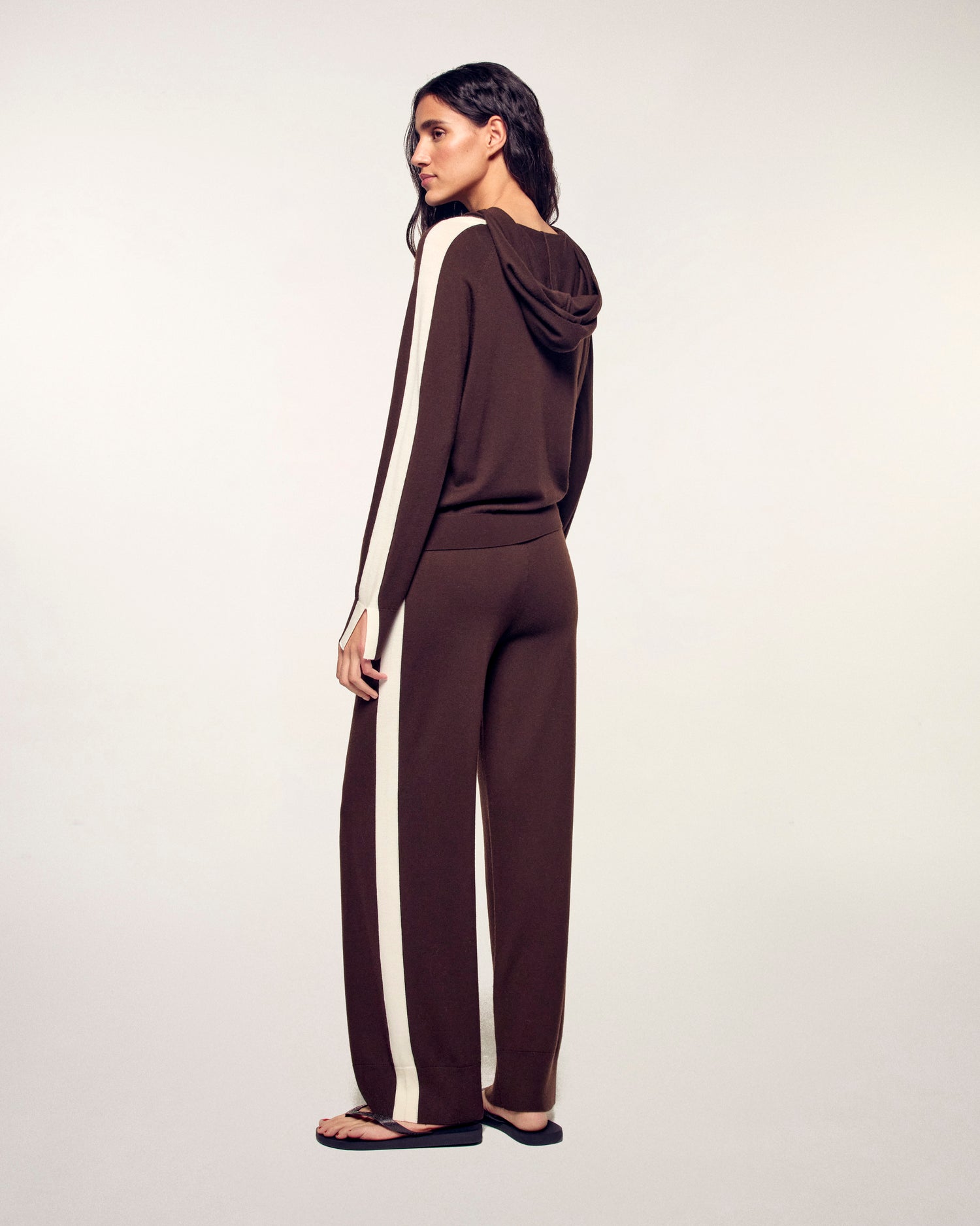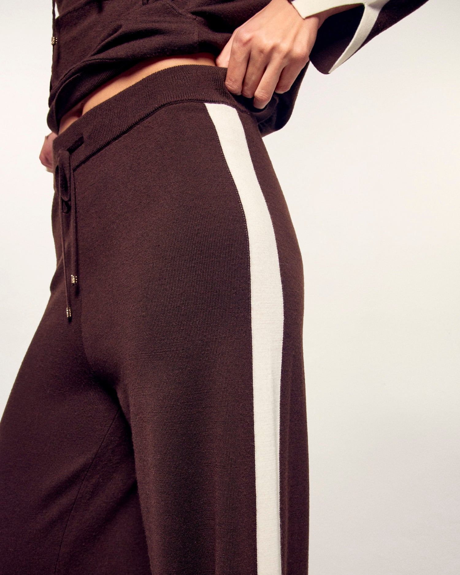 Ein lässiger und anspruchsvoller Look für diese weit geschnittene Jogginghose, ideal für Ihre Momente der Entspannung wie auch für Ihre urbanen Ausflüge. Sie ist aus Merinowolle gefertigt und besticht durch ihre seitlichen farbigen Streifen, die die Silhouette optisch strecken, sowie durch die edlen Details an den Kordelenden.