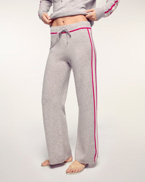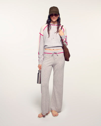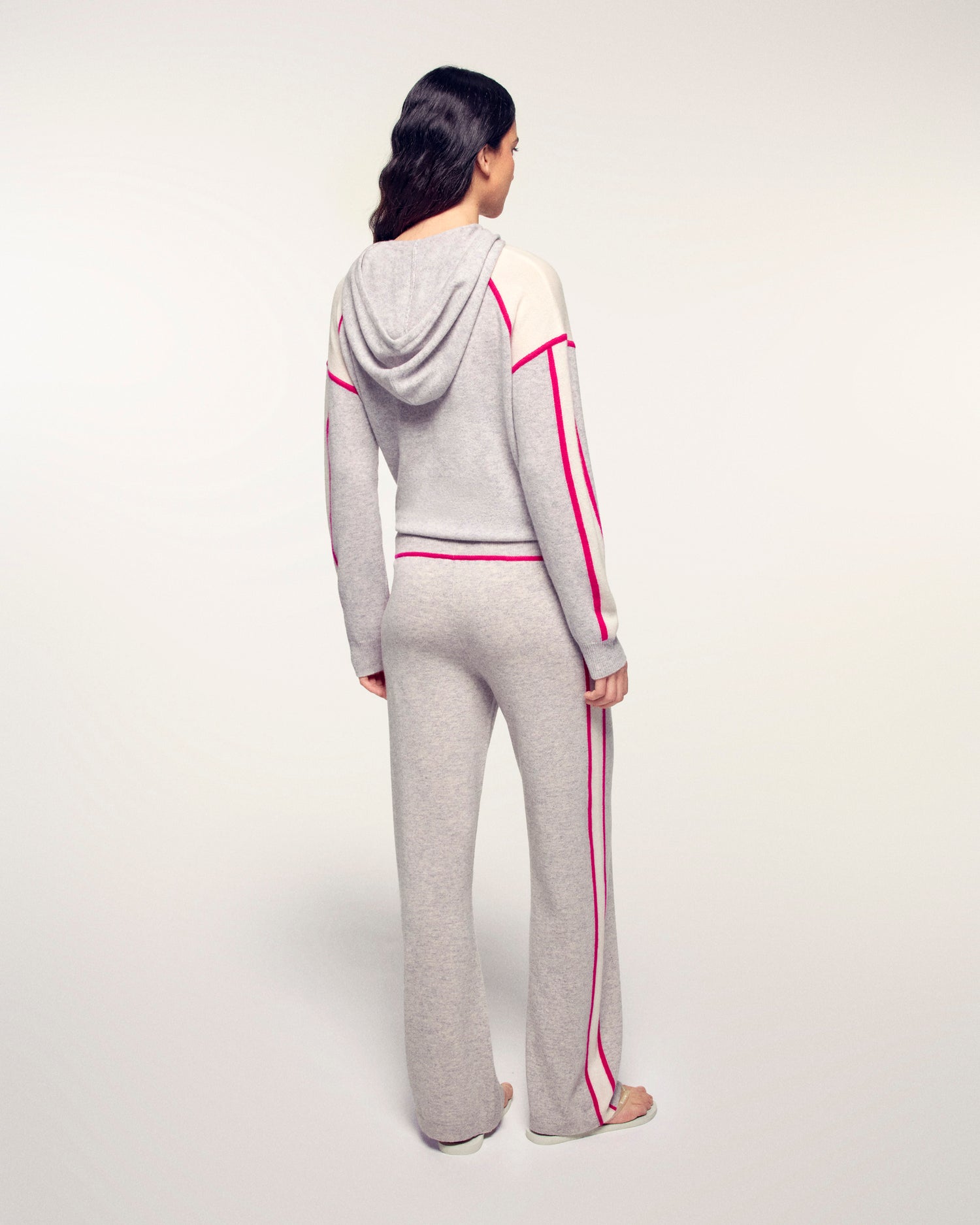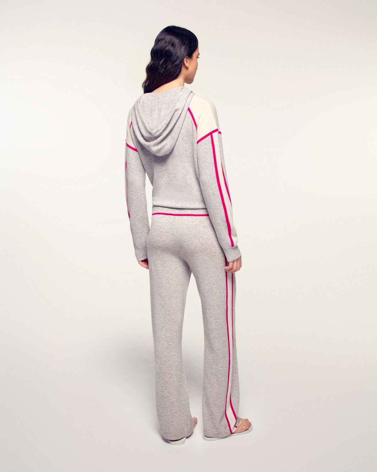 Diese Jogginghose aus Kaschmir 2 Fäden verbindet Sportswear-Komfort mit dem Luxus von Strick. Ihr gerader Regular-Schnitt und die kontrastierenden Ringel an den Seiten strecken die Silhouette und verleihen ihr einen grafischen und trendigen Look.