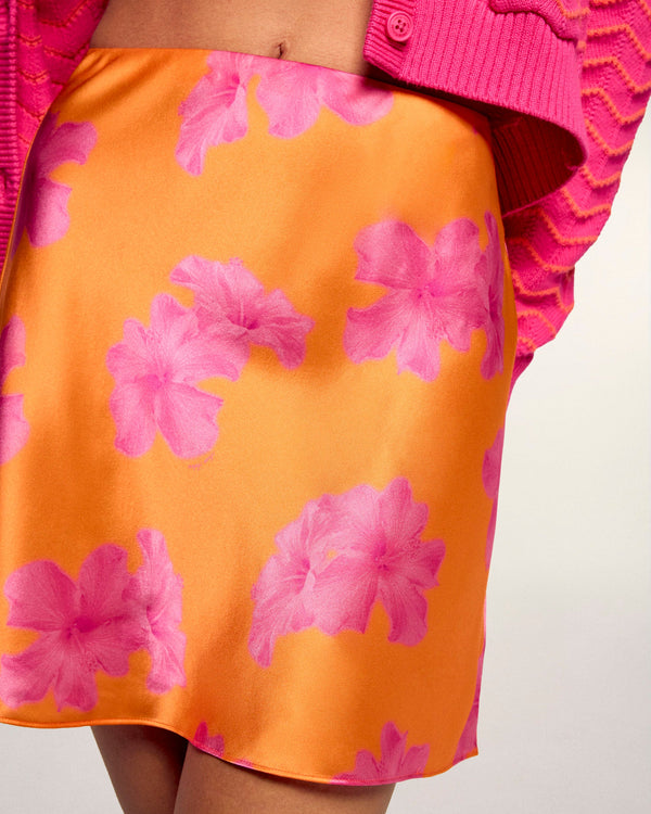 Dieser elegante kurze Rock aus Seidensatin ist mit einem Leopardenmuster versehen. Er ist am Bund elastisch und bietet einen fließenden, ausgestellten Fall. Als unverzichtbares Teil der femininen Garderobe lässt er sich ideal mit einem Camisole-Top oder einer geknoteten Bluse kombinieren.
