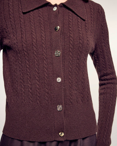 Der Cardigan, der für einen schicken Vintage-Touch sorgt. Dieser aus Kaschmir 2 Fäden gefertigte Cardigan bietet einen weichen und leichten Strick. Sein kurzer Slim-Schnitt wird durch feine Zopfmuster strukturiert und durch originelle Zierknöpfe aufgewertet.