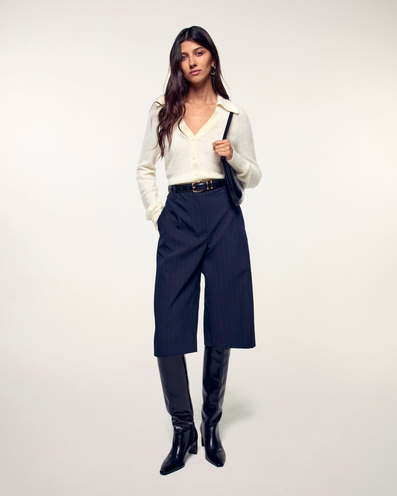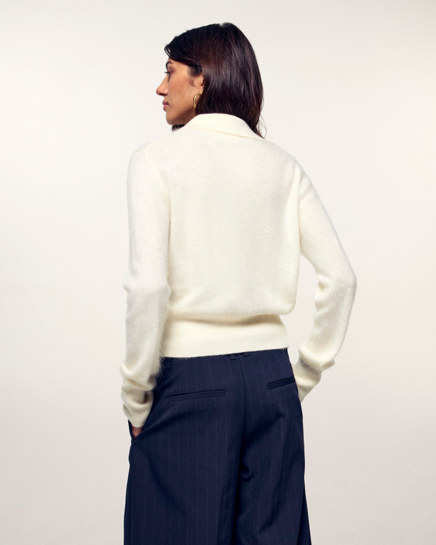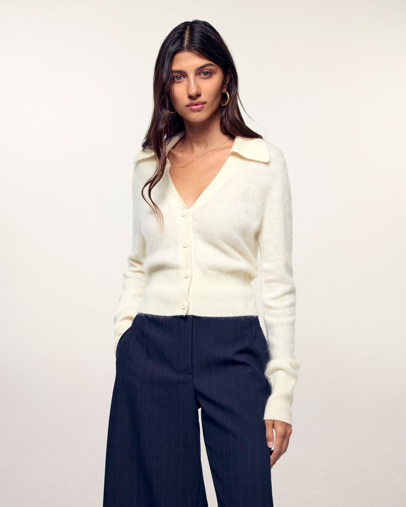 Brushed Kaschmir Rippen Cardigan Sticklogo - 100% Kaschmir - GCS-verifiziert - Ecru