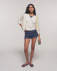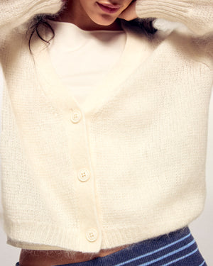 Ein luftiges und farbenfrohes Kleidungsstück, das Ihrer Silhouette einen Hauch von Weichheit und Modernität verleiht. Dieser Cardigan-Pullover besticht durch seine flauschige Optik und seinen leichten Strick, ideal um Ihre saisonalen Outfits mit Stil zu wärmen.