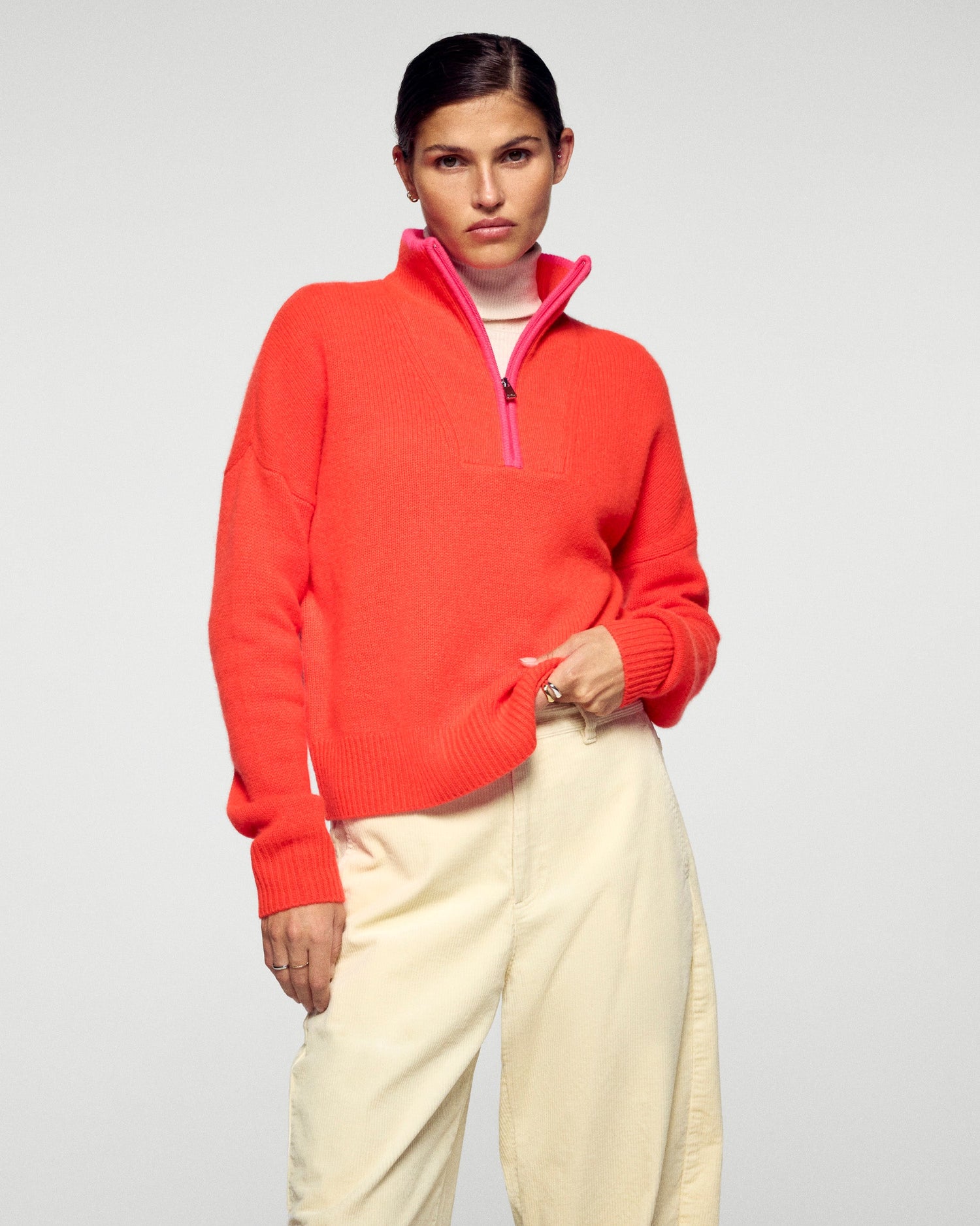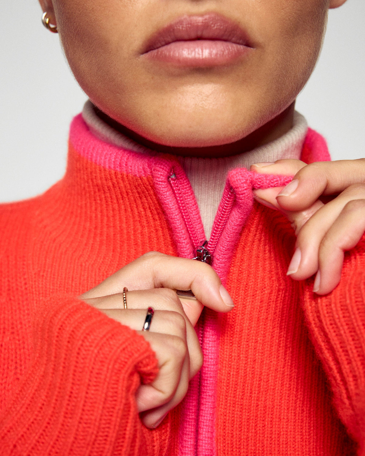 - Troyer-Kragen mit kontrastierendem Reißverschluss