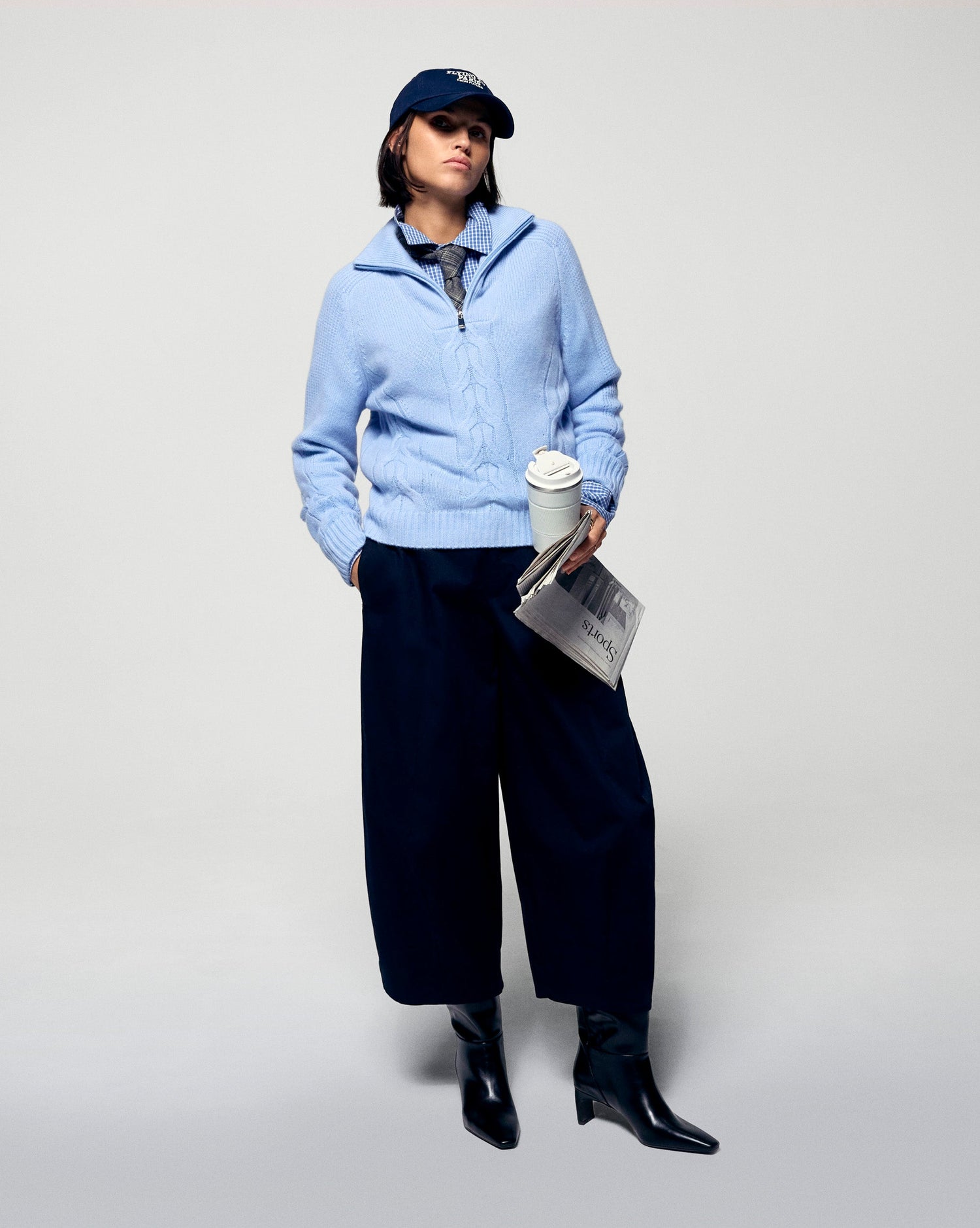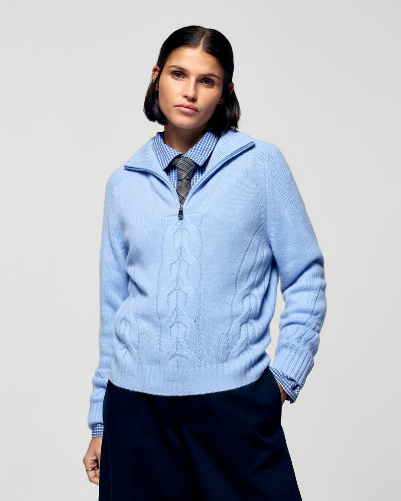 Pullover Troyer-Kragen - 100% Kaschmir - GCS-verifiziert - Smooth Blue