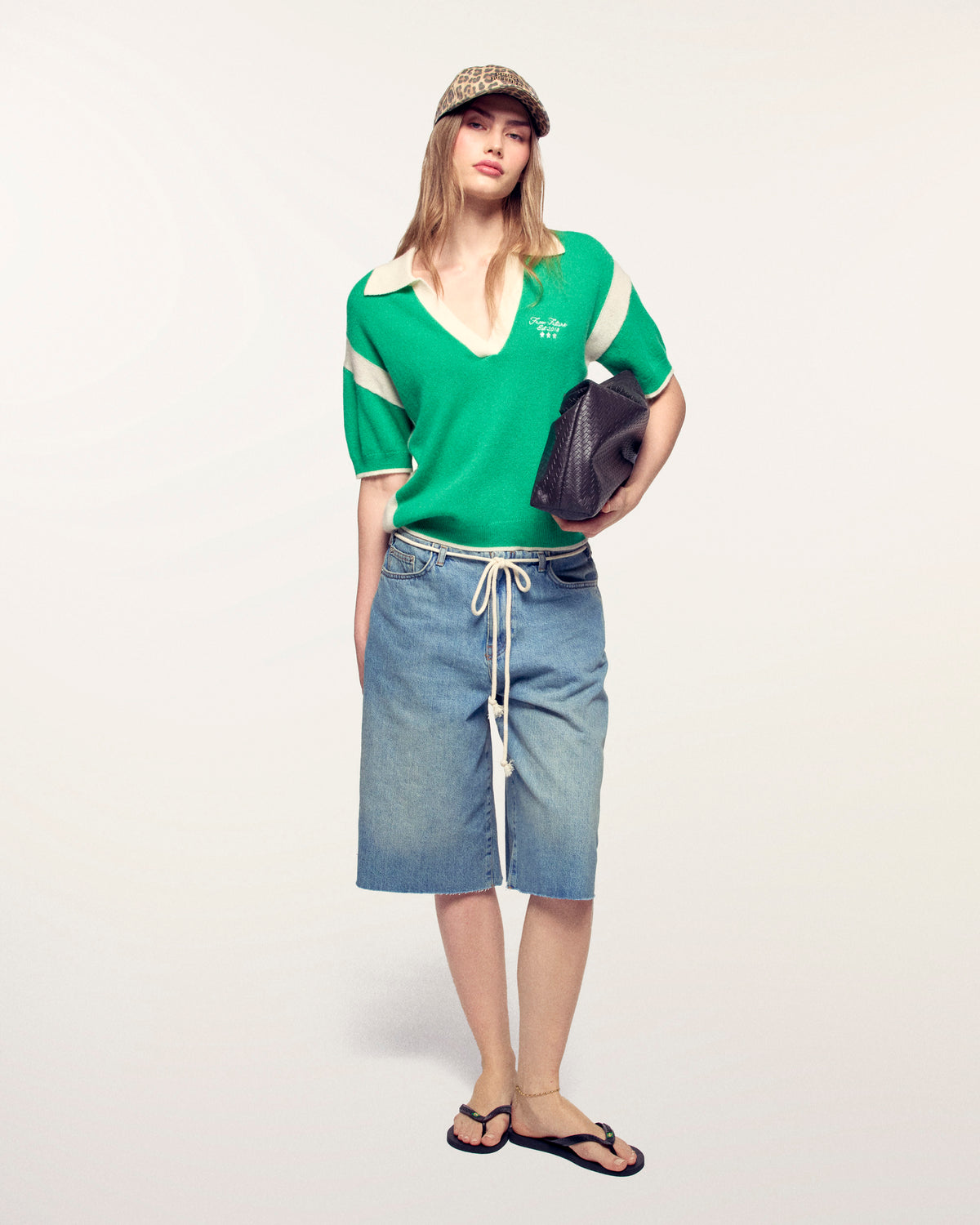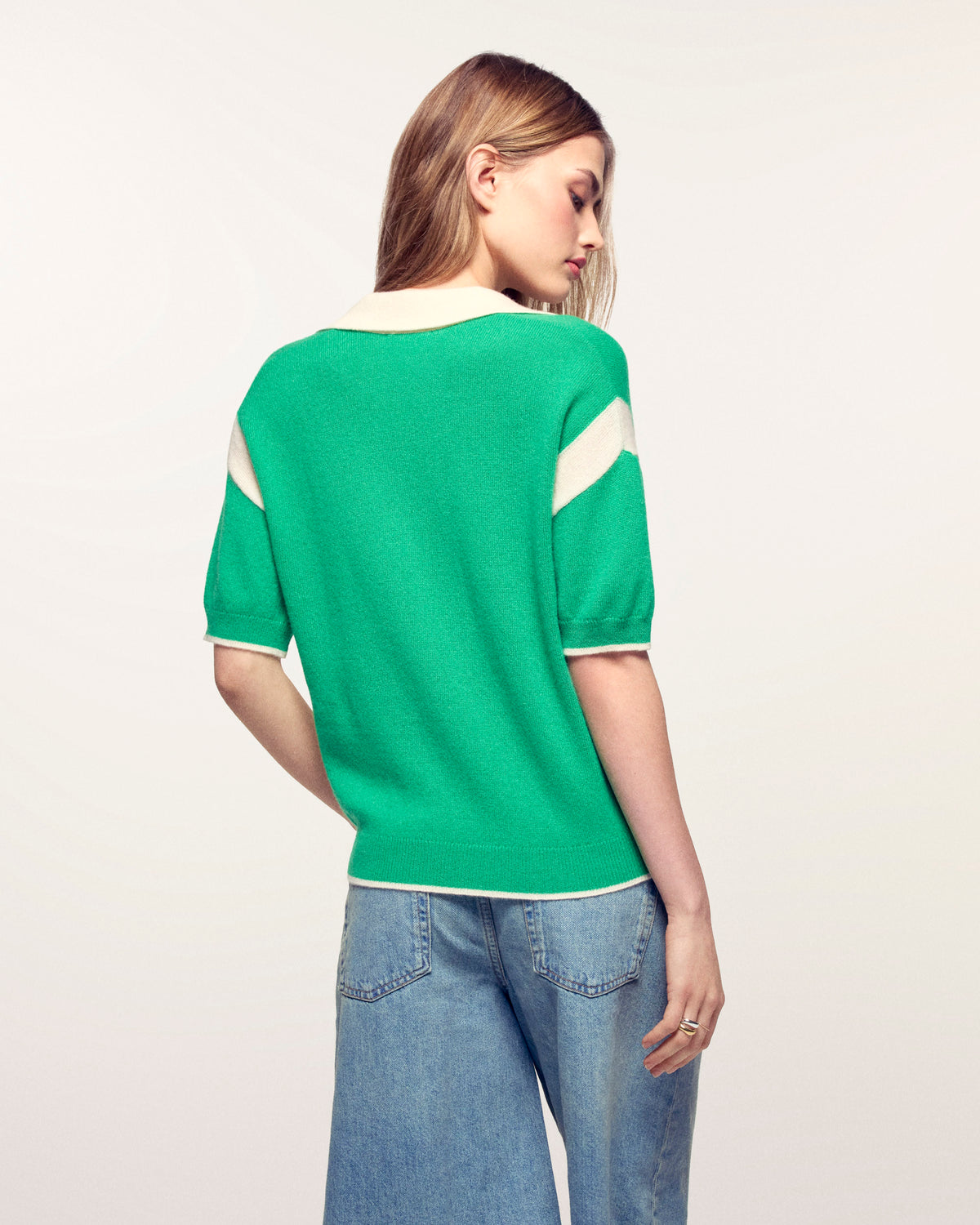 - Kontrastierender V-Polo-Kragen