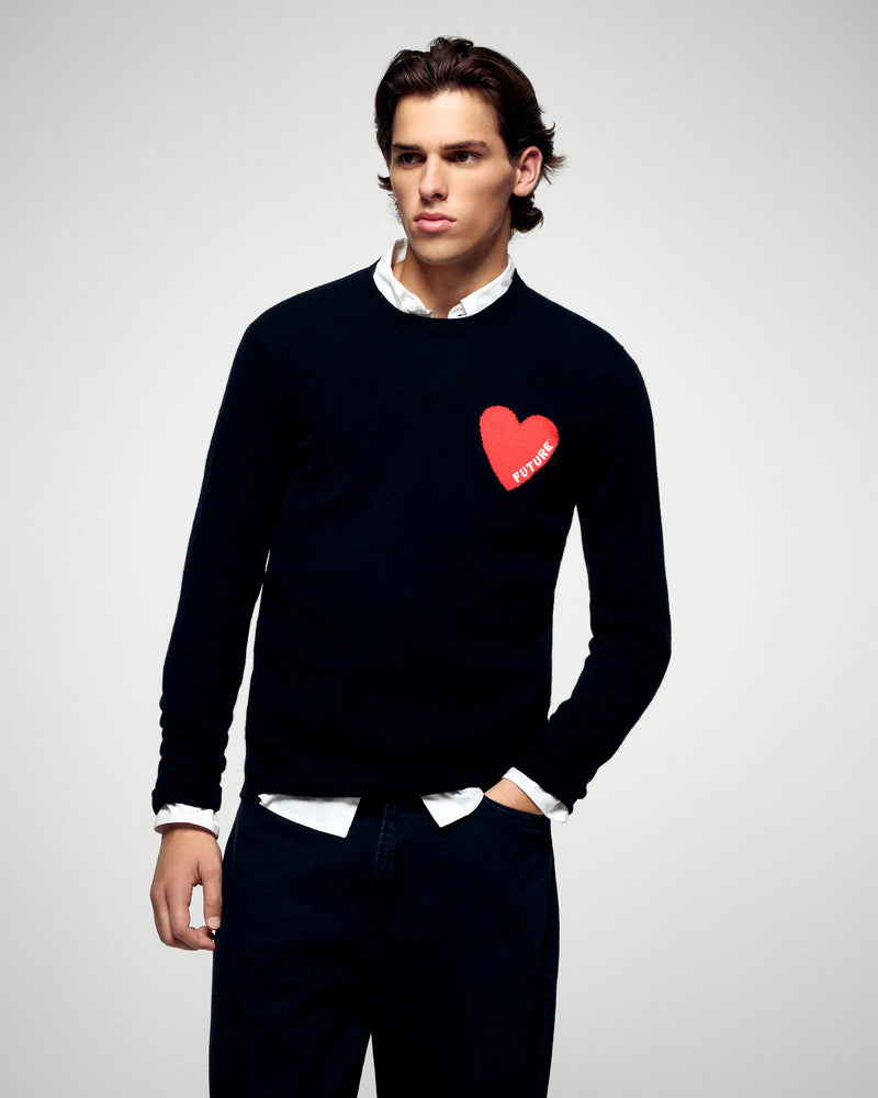 Dieser Pullover aus unendlich weichem, 2-fädigem Kaschmir mit Rundhalsausschnitt, langen Ärmeln und gerippten Abschlüssen ist auf der Brust mit einem gesticktes Herz mit „FUTURE“-Schriftzug verziert. Join the Future Club – mit diesem Essential der „From Future“-Kollektion!