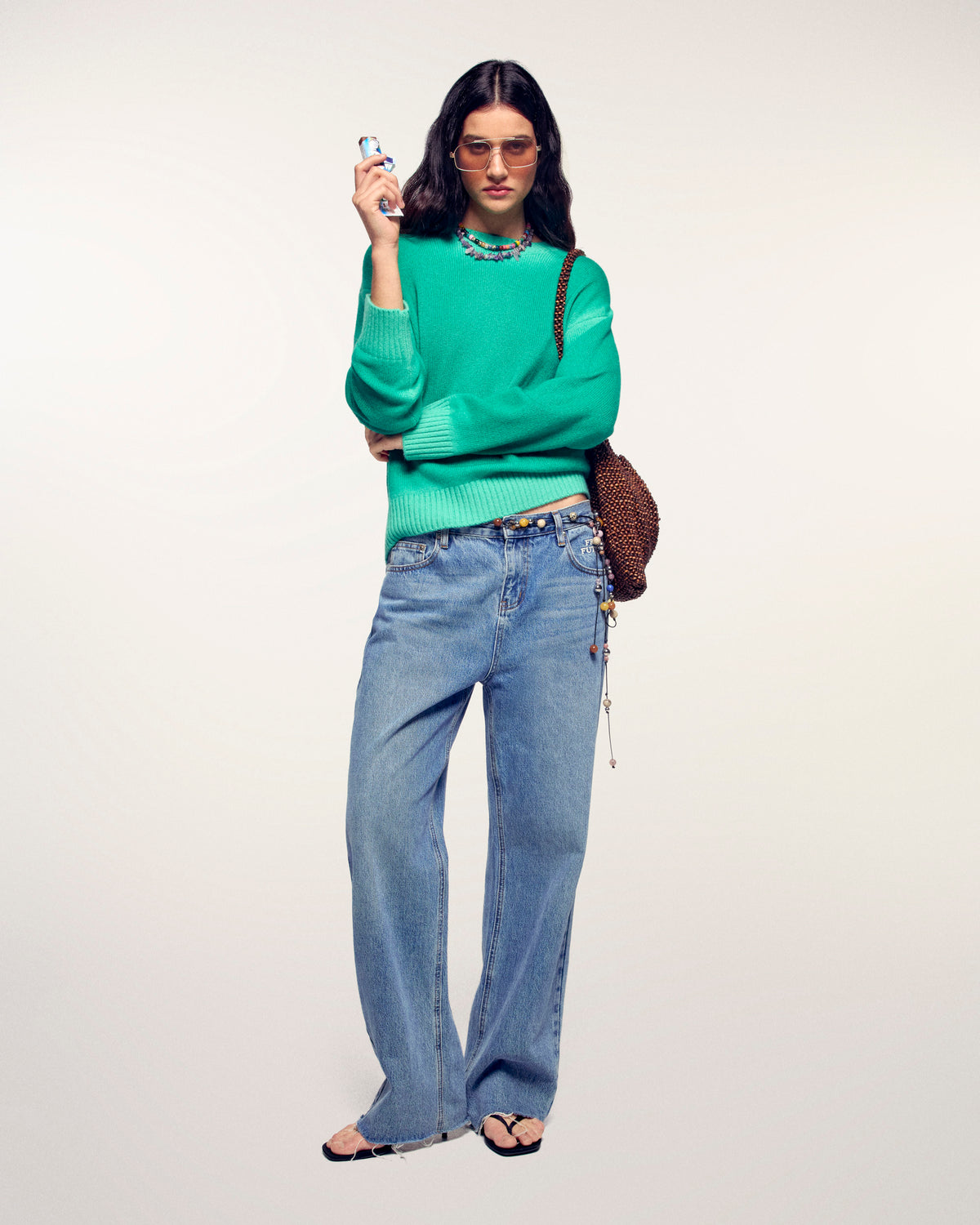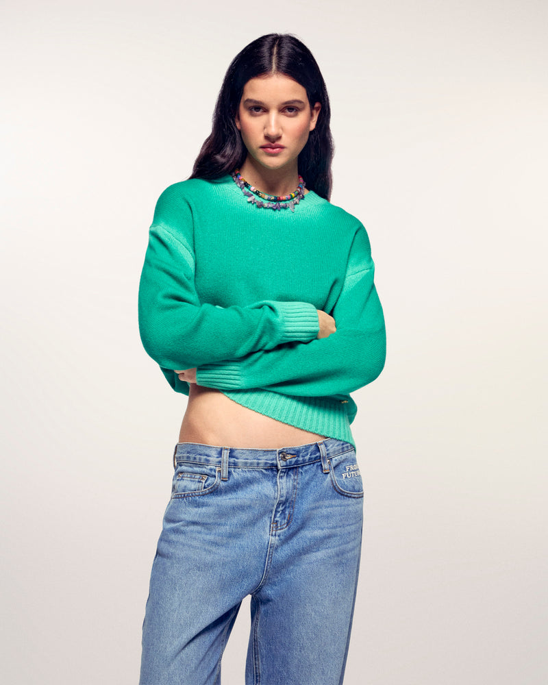 Ein lebendiges und kühnes Kleidungsstück, das das Licht einfängt, um Ihrem Look Dynamik zu verleihen. Dieser Kaschmirpullover besticht durch seine Neonfarbe mit verwaschenem Finish an den Kanten, was ihm eine einzigartige Vintage-Optik verleiht, ergänzt durch eine charakteristische Metallplakette für einen Hauch von Raffinesse.