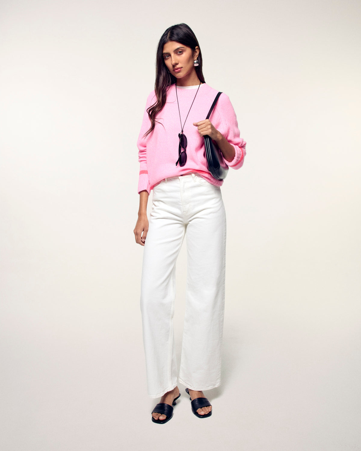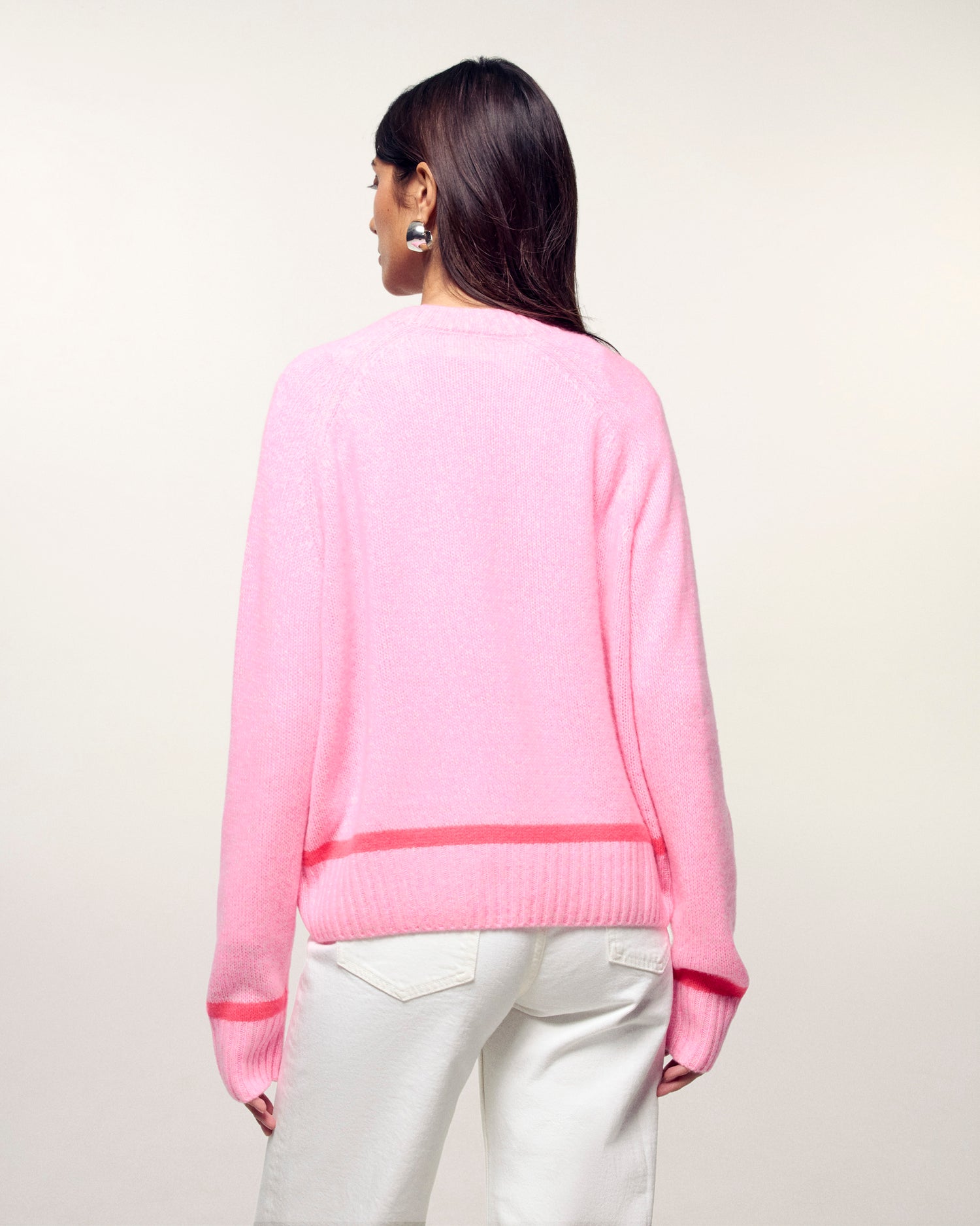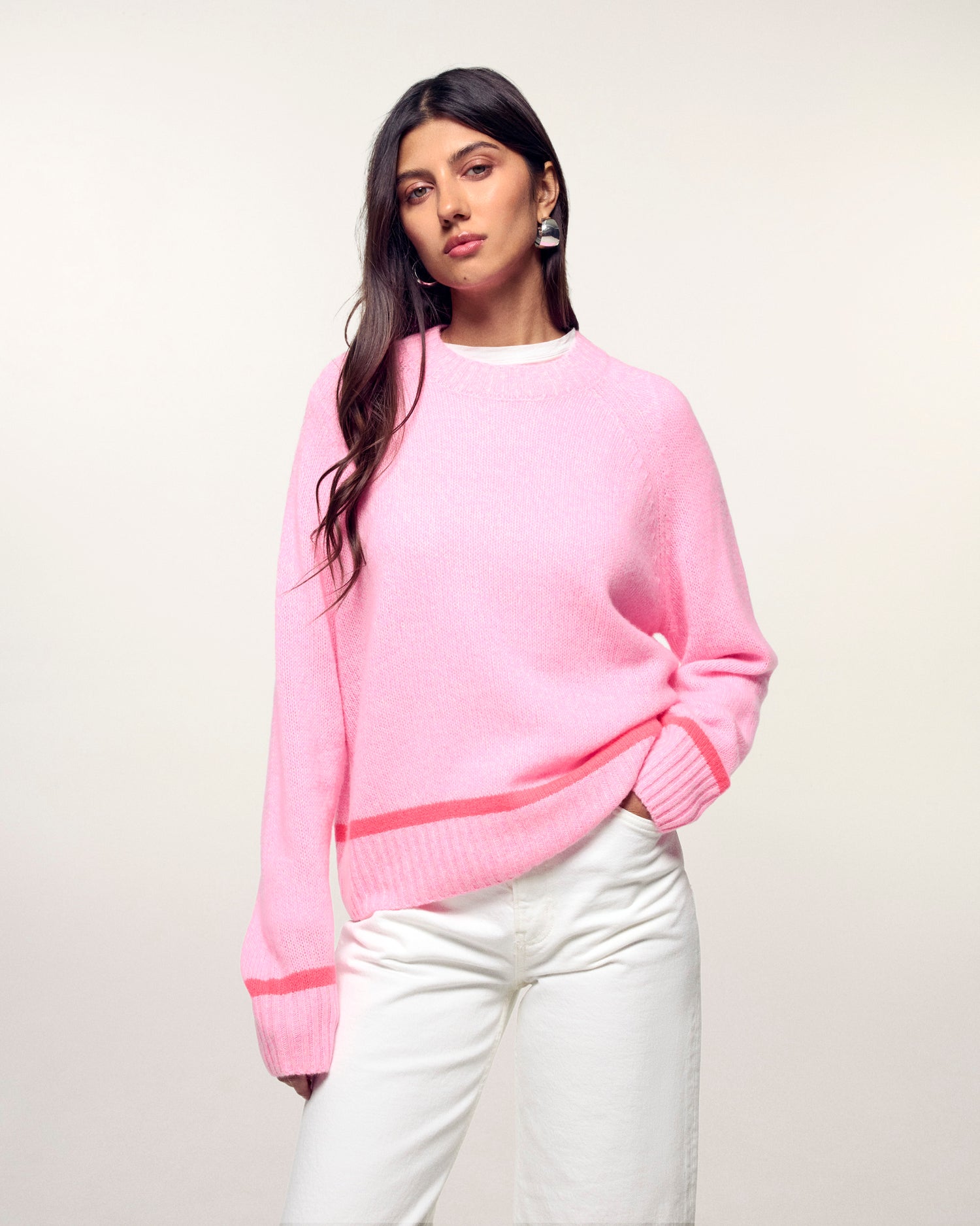 Der Pullover mit einer reichen und weichen Textur. Dieser aus Kaschmir 4 Fäden gefertigte Pullover ist aus Mouliné-Garn gestrickt, was für einen schönen melierten und texturierten Effekt sorgt. Seine Oversize-Passform wird durch kontrastierende Strickbündchen am Saum und an den Ärmeln modernisiert, was für einen grafischen und trendigen Look sorgt.