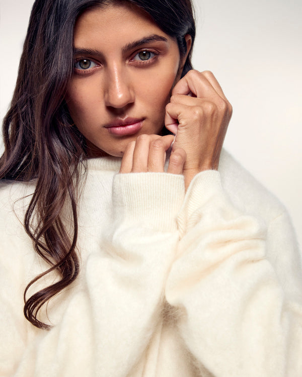 A Pullover in Kaschmir mit einem modernisierten Look, entworfen, um im Alltag Weichheit und Komfort zu bieten.