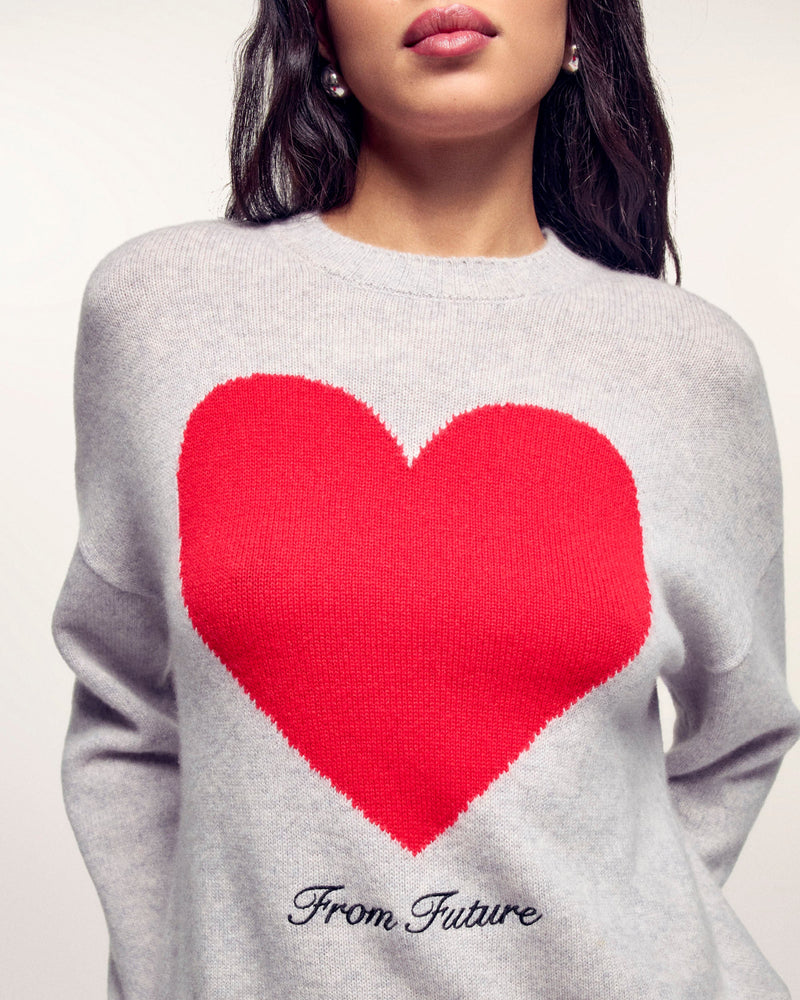 Dieser aus Kaschmir 4 Fäden gefertigte Pullover bietet einen dichten und weichen Strick. Seine zeitlose Regular-Passform wird durch ein großes Herzmotiv in Intarsien-Technik mit der aufgestickten Aufschrift "Future" in der Mitte dynamisiert.