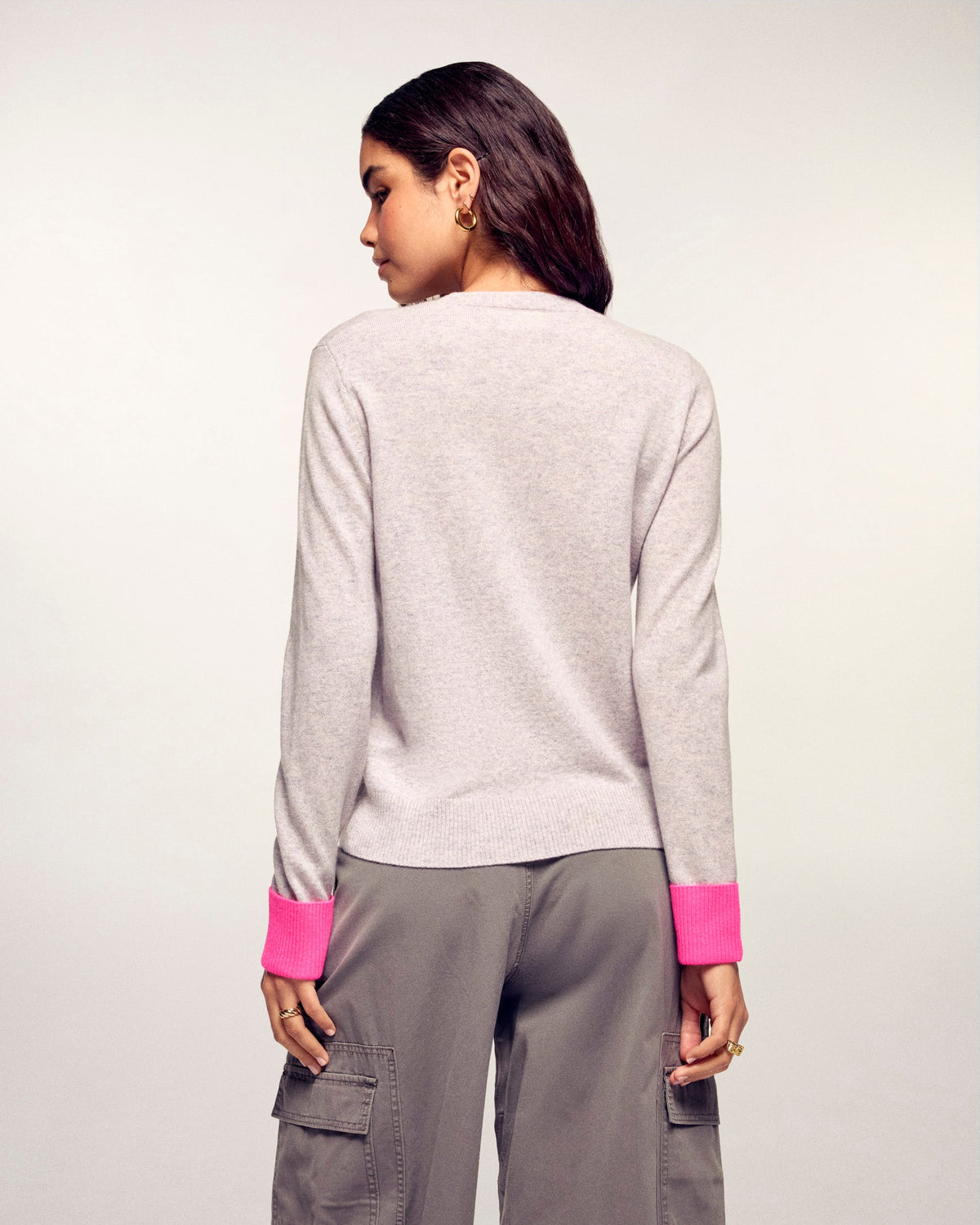 - Kontrastierende zweifarbige Rippstrick-Abschlüsse