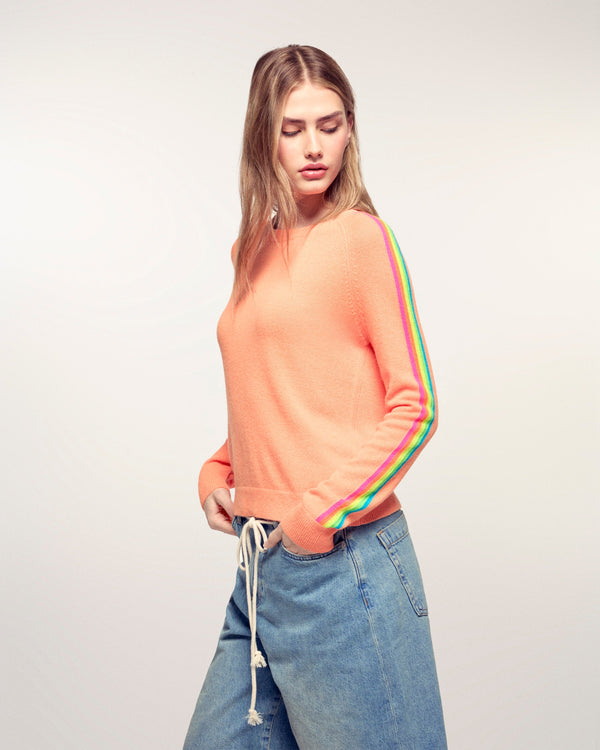 Die Eleganz von Kaschmir trifft bei diesem Rundhalspullover auf kräftige Farben. Gefertigt aus Kaschmir 2 Fäden, bietet er unvergleichliche Weichheit und ideale Leichtigkeit. Die bunten Streifen an den Ärmeln verleihen dem Regular-Schnitt eine dynamische Note für einen modernen und zeitlosen Look.