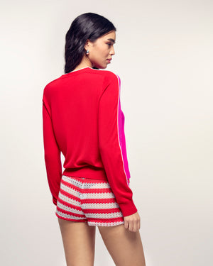 Der ultra-lebendige Color-Block-Pullover. Dieser aus Extrafine Merinowolle 2 Fäden gefertigte Pullover bietet einen weichen und leichten Strick. Seine normale Passform und seine dreifarbige Konstruktion werden durch Kontraststreifen an den Ärmeln und am Kragen in einer dritten Farbe unterstrichen, was für einen sportlich-schicken Grafik-Effekt sorgt.