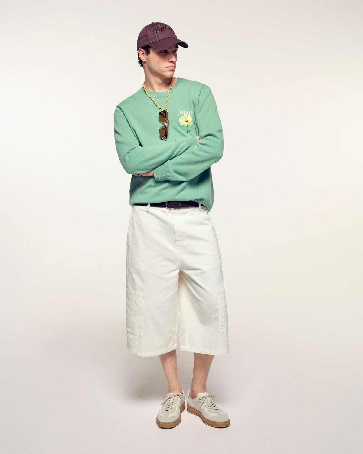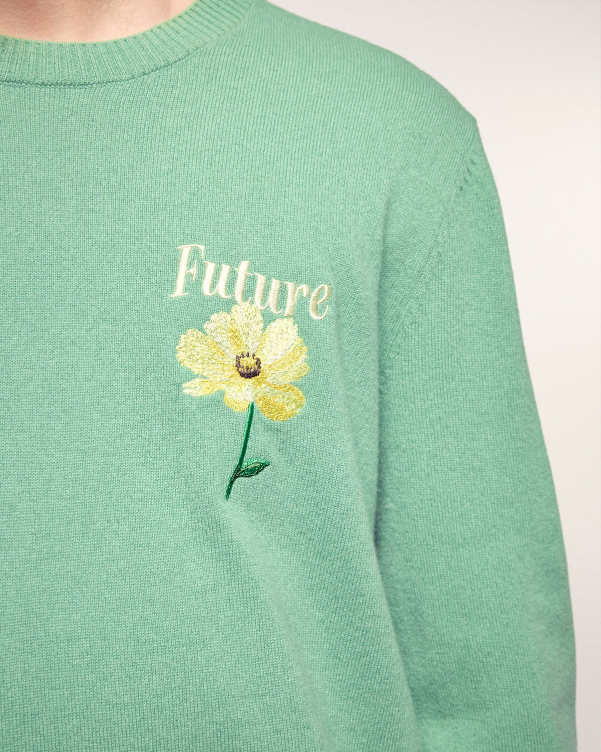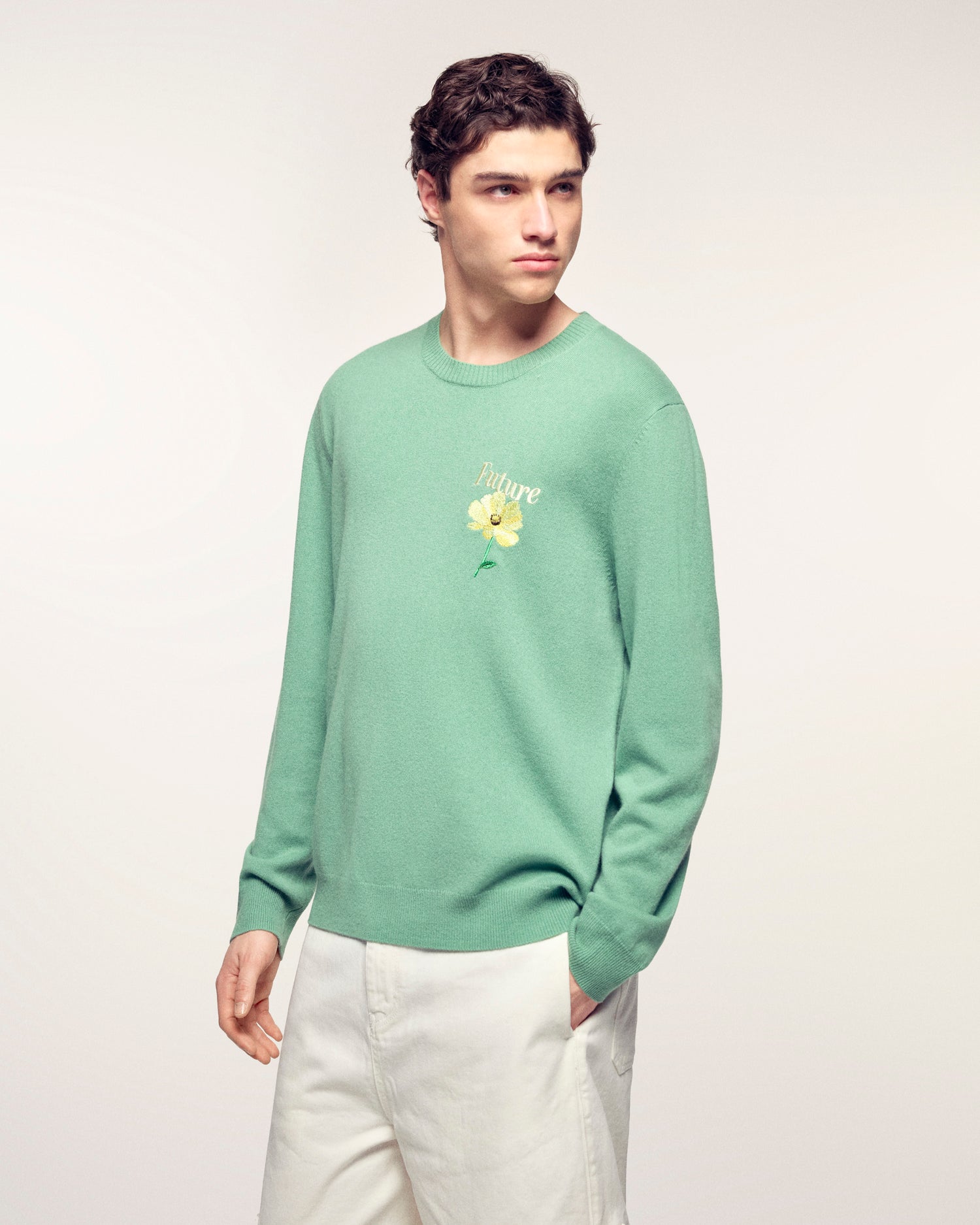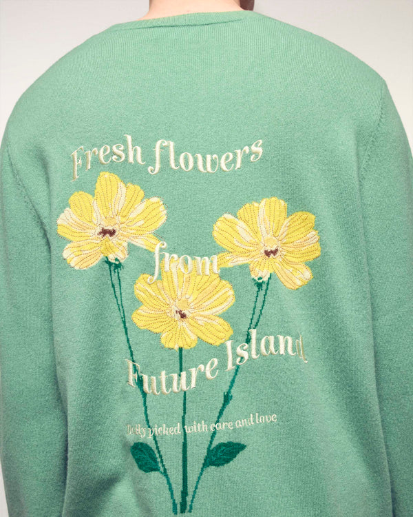 Der Pullover, der Ihrem Look eine originelle Note verleiht. Er ist aus Kaschmir 2 Fäden gefertigt und bietet unvergleichlichen Komfort. Dieser Pullover besticht durch sein großes Blumen-Jacquard-Muster und die Stickerei auf dem Rücken, die einen unkonventionellen und künstlerischen Stil unterstreicht.