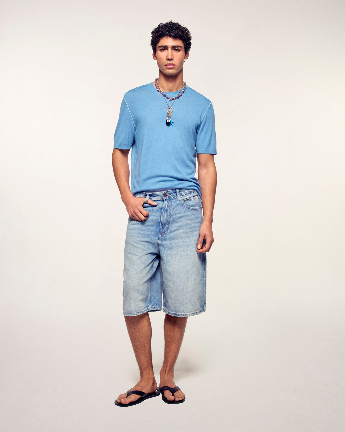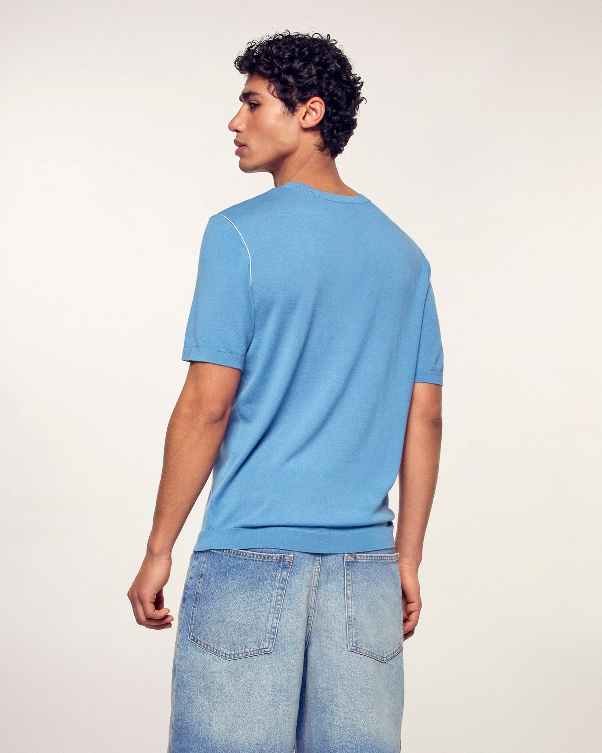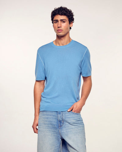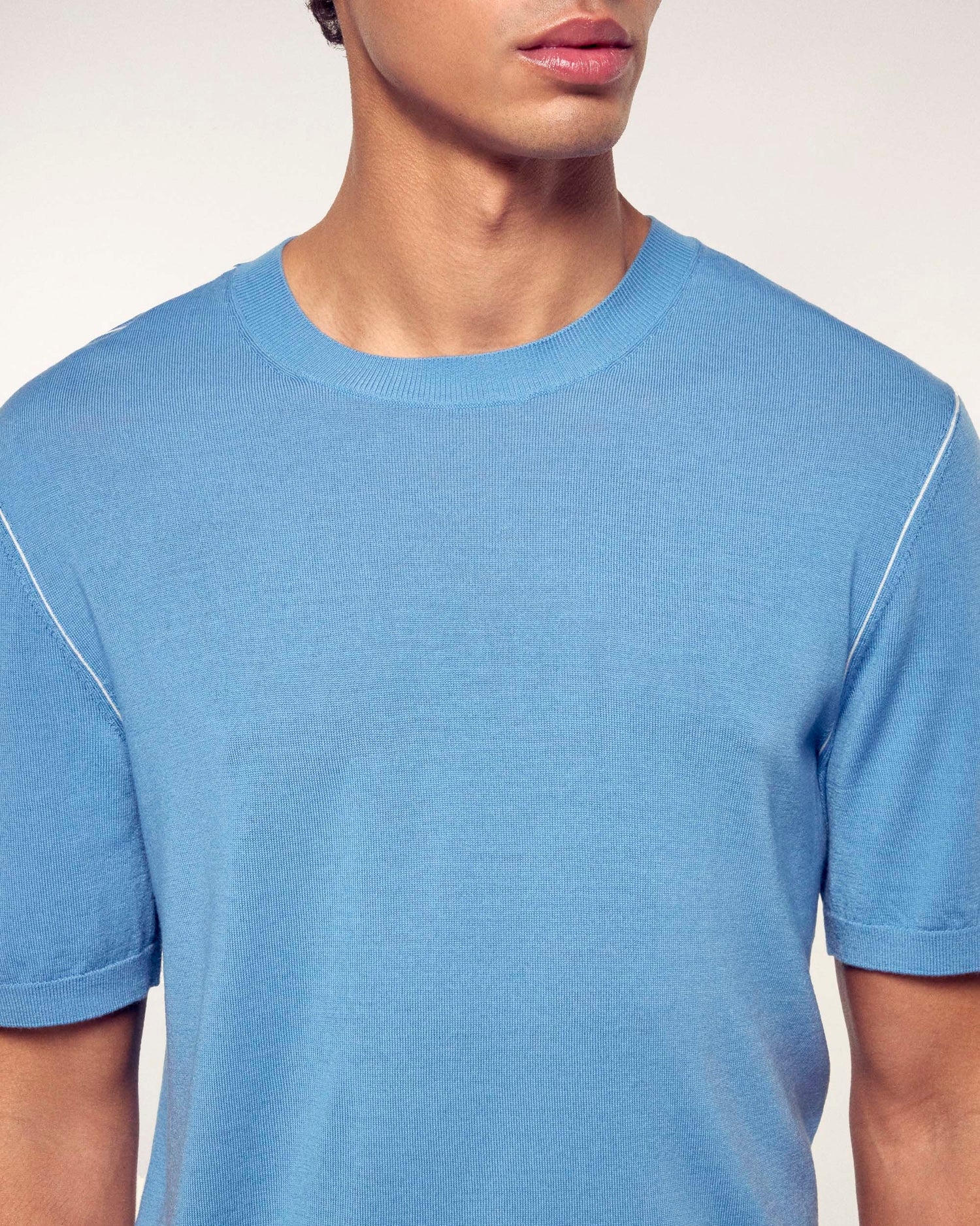 Ein minimalistisches und elegantes Kleidungsstück, gefertigt aus Merinowolle für absolute Leichtigkeit. Dieser Kurzarmpullover besticht durch seine feinen, kontrastierenden Paspeln, die die Silhouette dezent betonen und für einen modernen und raffinierten Stil sorgen.