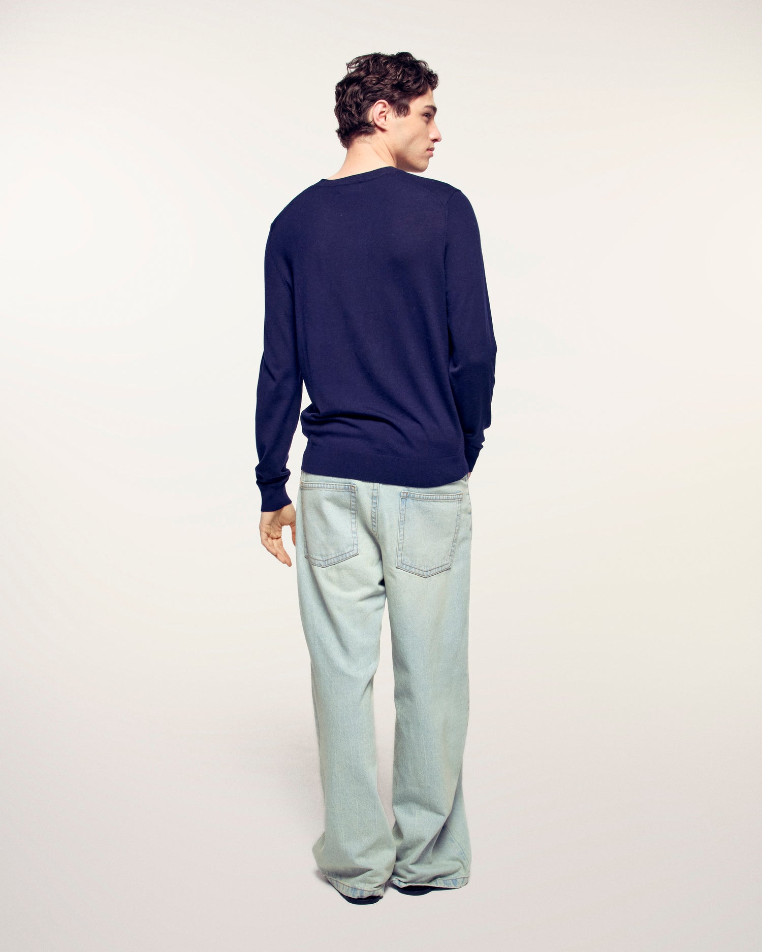 Ein ikonisches Kleidungsstück, das Komfort und grafische Signatur vereint. Dieser Pullover aus Merinowolle besticht durch sein Herzmotiv in Jacquard-Strick auf der Brust, das durch eine feine „Future“-Stickerei betont wird und für einen ebenso modernen wie gewagten Look sorgt.