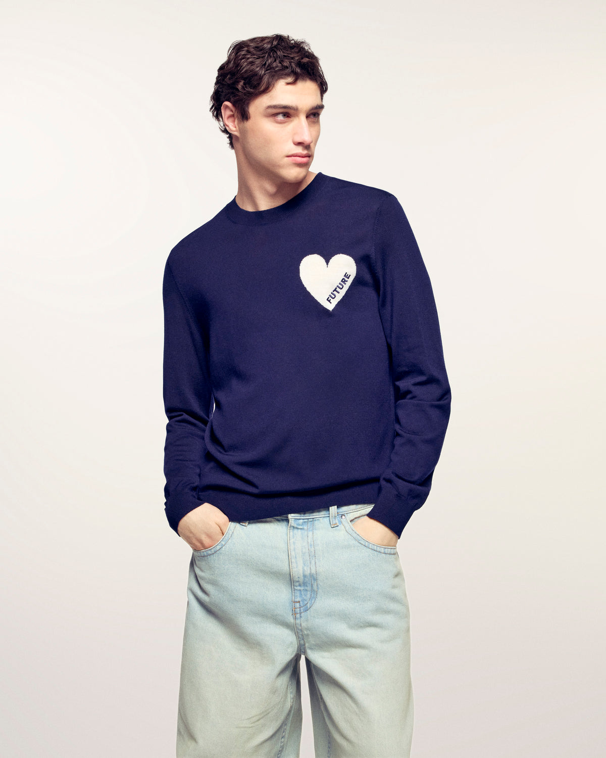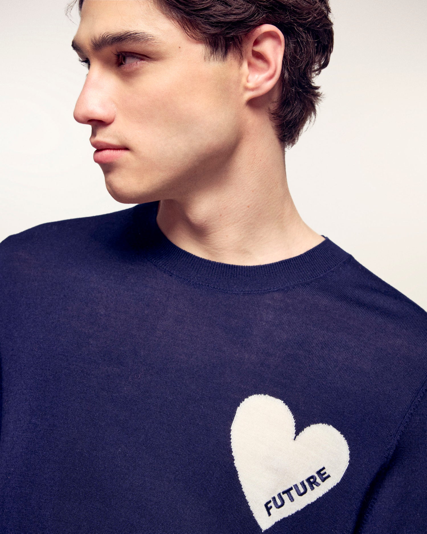 - Herzmotiv in Jacquard-Strick mit „Future“-Stickerei auf der Brust