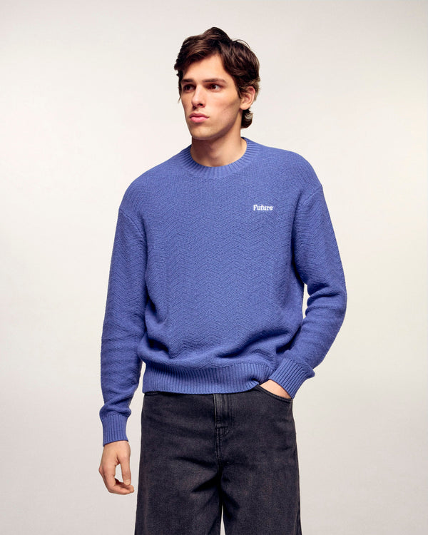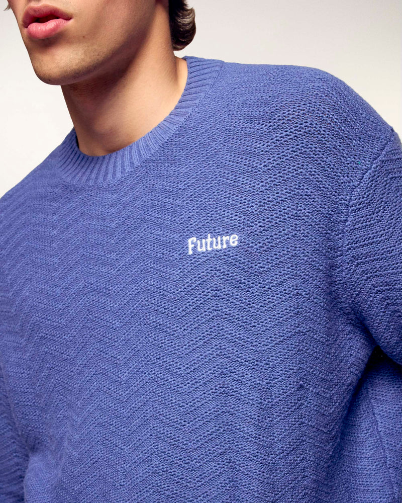 Dieser Rundhalspullover interpretiert Essentials mit einer aufwendigen Textur und optimalem Komfort neu. Er ist aus einer weichen Mischung aus Baumwolle und Kaschmir gefertigt und besticht durch ein unifarbenes Maschenspiel, das ihm ein dezentes und modernes Relief verleiht. Seine Oversize-Passform zeigt unseren „Future“-Schriftzug, der dezent auf der Brust aufgestickt ist, für einen Look, der sowohl lässig als auch gepflegt wirkt.