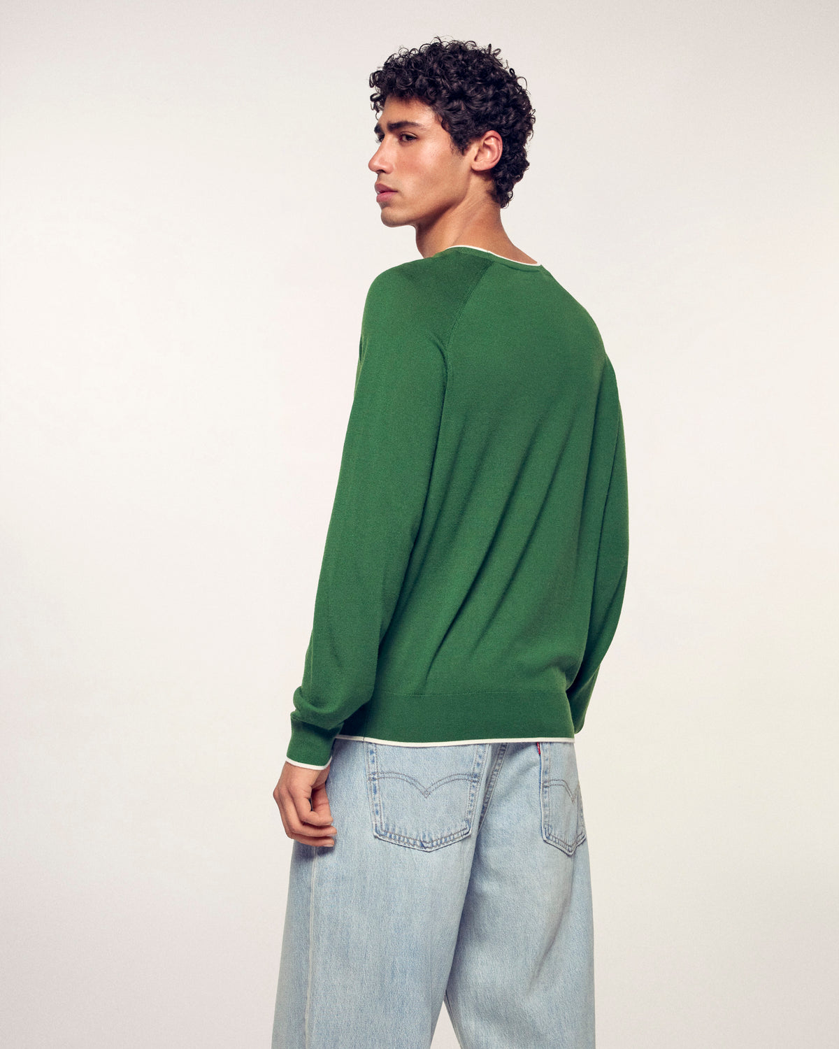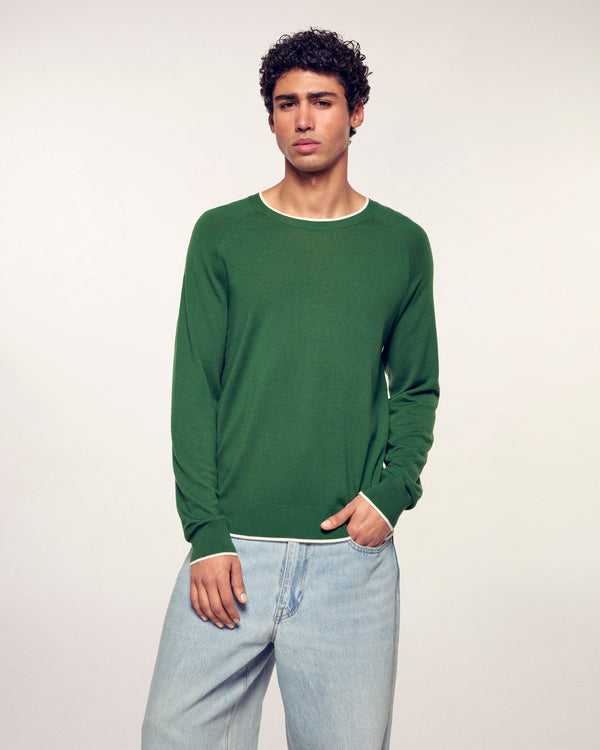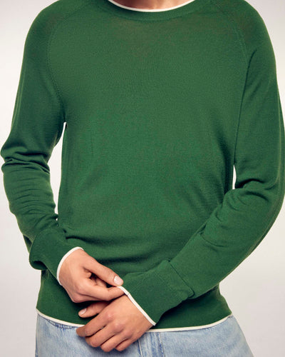 Kontrastierende Paspeln-Rundhalsschnitt Pullover - 100% Merinowolle – RWS-zertifiziert - Summer Kaki