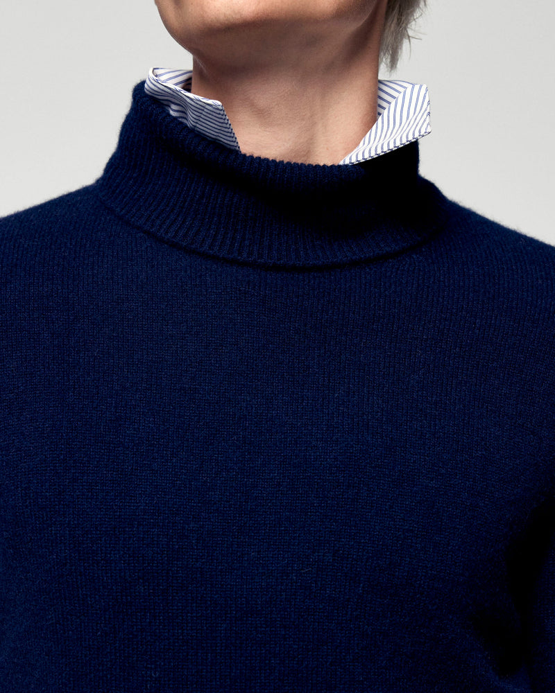 Dieser Pullover aus 4-fädigem Kaschmir ist wunderbar weich. Er hat lange Ärmel, gerippte Abschlüsse und einen Rollkragen und sorgt für eine zeitlose, minimalistische Silhouette. Kombinieren Sie ihn nach Lust und Laune, eine lässige Jeans und ein strukturierter Mantel sind die perfekten Kombipartner.