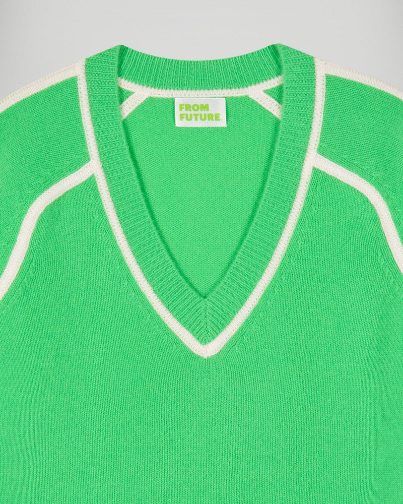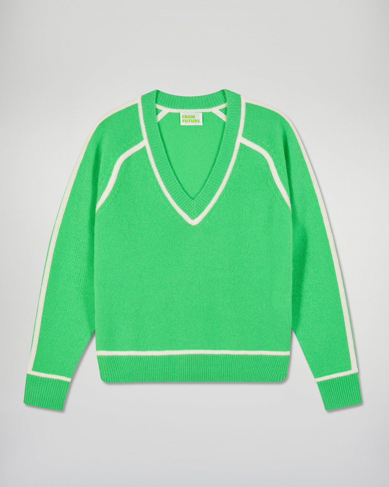 Dieser Pullover aus Kaschmir ist mit gewagten Details versehen. Mit V-Ausschnitt, langen Ärmeln und gerippten Abschlüssen. Kontrasteinfassungen betonen die strukturierte Silhouette. Kombinieren Sie ihn mit einer weiten Jeans oder einer Anzugshose für einen schicken Casual Look.