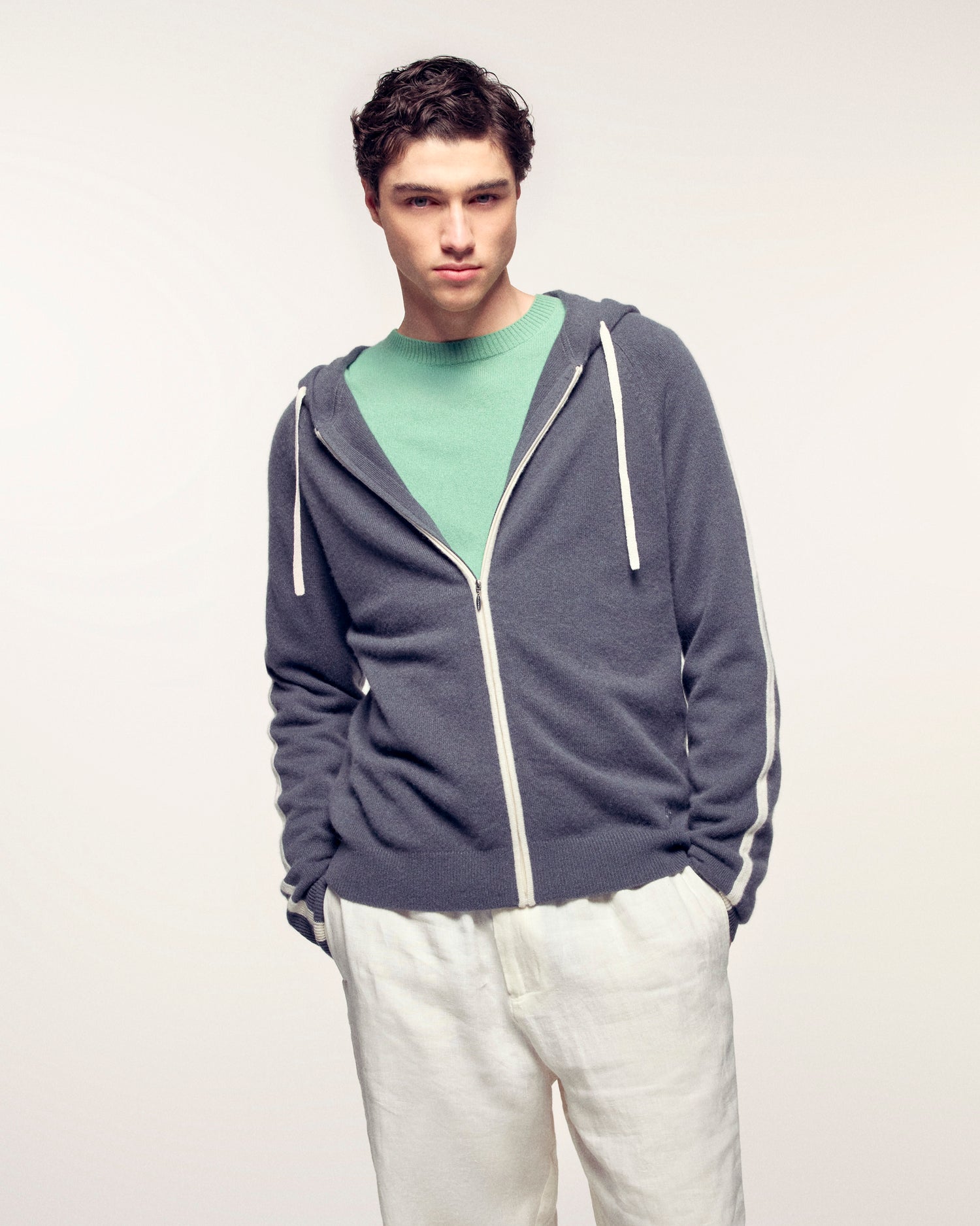 Dieser aus 2-fäden Kaschmir gefertigte Kapuzenpullover bietet eine unvergleichliche Weichheit. Sein Oversize-Schnitt wird durch kontrastierende seitliche Ringel, Kordeln und einen Reißverschluss aufgewertet, was für einen sportlichen und trendigen Look sorgt.