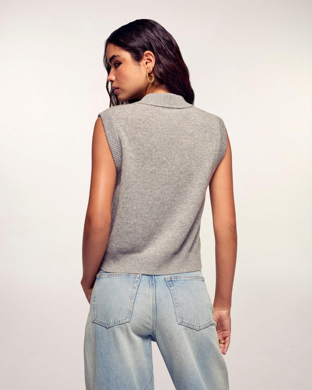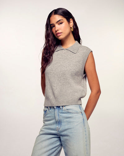 - Ärmelloser Polopullover aus 100% 2-fäden GCS-zertifiziertem Kaschmir