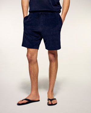 Diese Bermuda-Shorts sind der ideale Begleiter für eine lässige und bequeme Sommergarderobe. Das in Portugal aus weichem Baumwoll-Frottee gefertigte Modell bietet ein sofortiges Wohlgefühl. Die Regular-Passform sorgt für eine moderne silhouette und große Bewegungsfreiheit.
