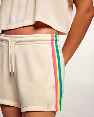 Eine dynamische und moderne Silhouette für diese Minishorts aus Stretch-Rippbaumwolle. Sie bestechen durch die ikonischen bunten Ringel der FROM FUTURE-Garderobe an den Seiten, ergänzt durch ein dezentes gesticktes Logo auf der Vorderseite. Ihre körpernahe Passform macht sie zu einem unverzichtbaren Stück für einen sommerlichen Look, der Komfort und Stil vereint.