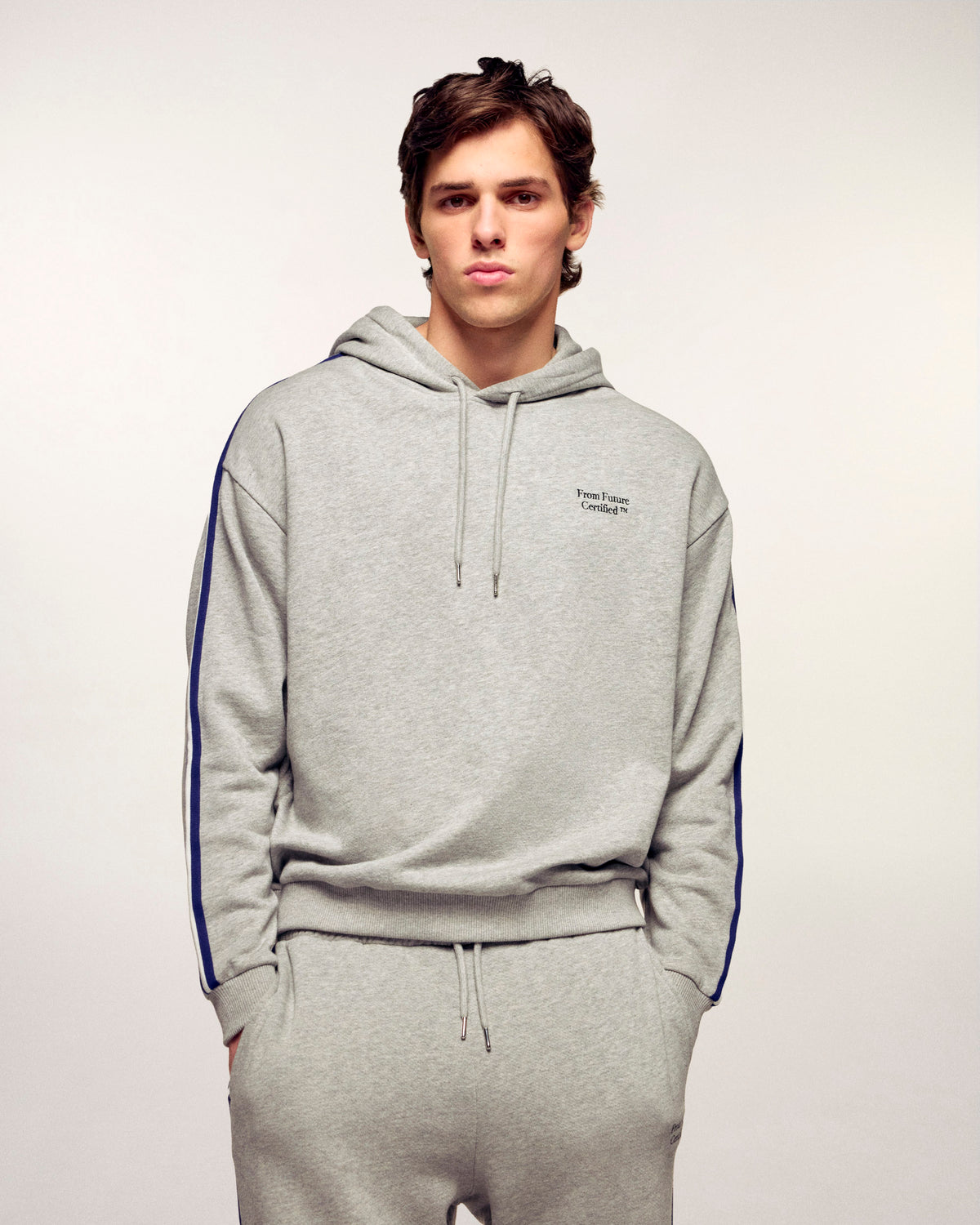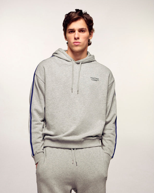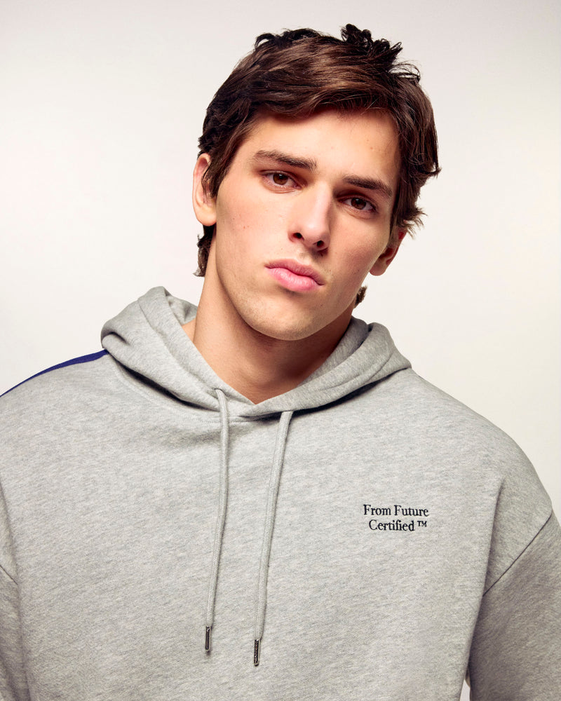 Dieser Hoodie aus Baumwolle vereint absoluten Komfort mit urbaner Ästhetik und ist ein Key-Piece der Casual-Garderobe. Er besticht durch seine zweifarbigen Seitenstreifen entlang der Ärmel und die charakteristische „From Future Certified“-Stickerei in Plattstich-Optik, die für eine dynamische und moderne Silhouette sorgt.