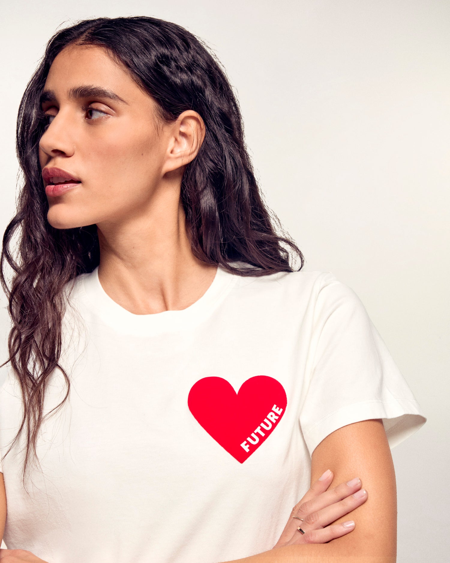 - Herz-Flockdruck mit „FUTURE“-Schriftzug auf der Brust