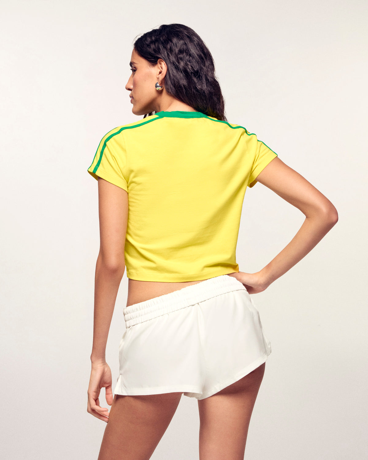 - Kontrastierender Rundhalsausschnitt in den Farben Brasiliens