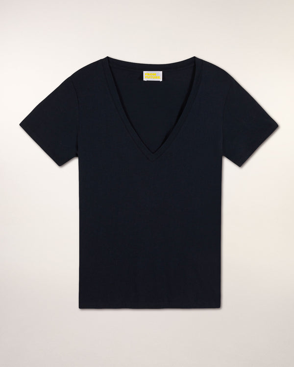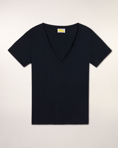 Dieses Baumwoll-T-Shirt mit V-Ausschnitt und kurzen Ärmeln ist ein unverzichtbares Basic der weiblichen Garderobe. Das perfekte Basic für jeden Tag und jeden Look.